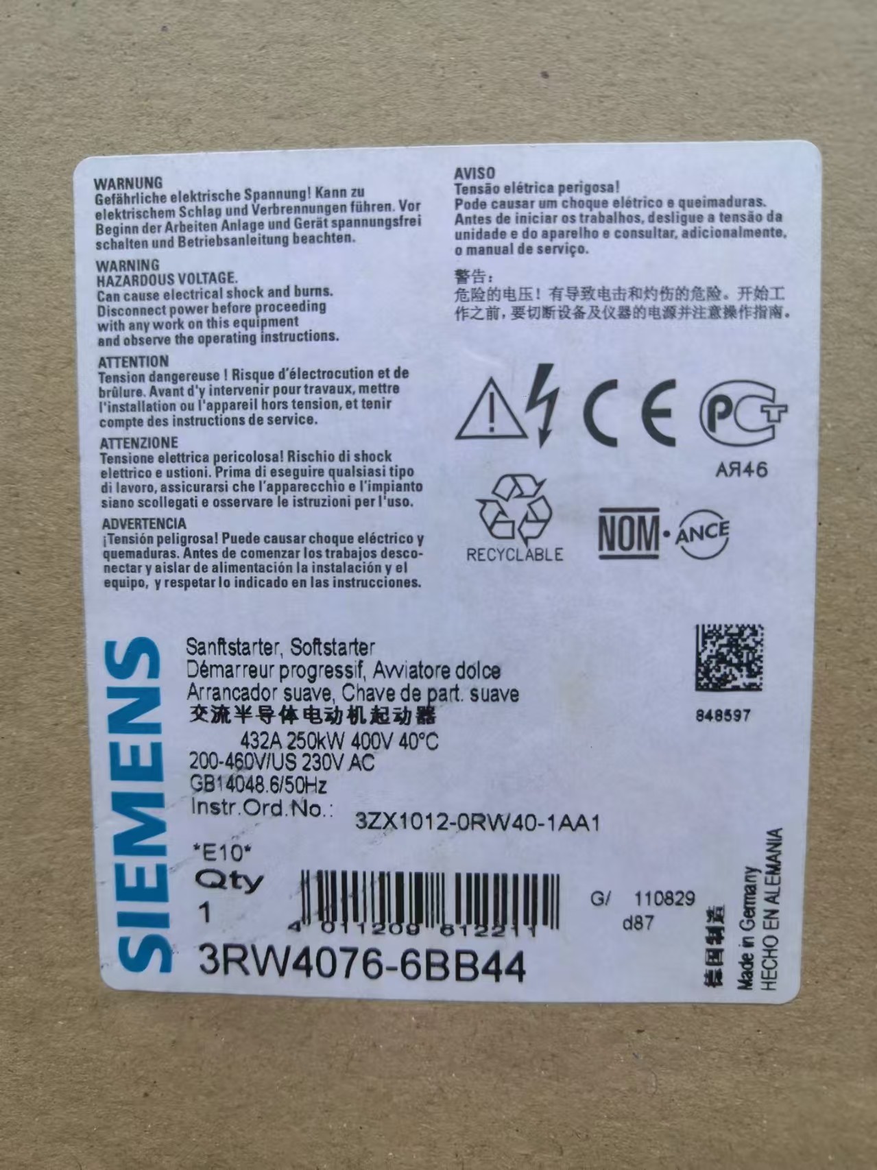 The company currently maintains sufficient stock for key models of Siemens 3R55 series soft starters, covering the following hot-selling specifications to meet diverse industrial application needs: