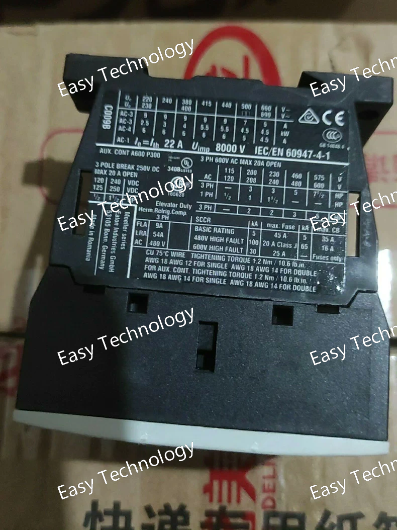 Technical Parameters Parameter Specification Model DILMC9-01 Rated Operational Current (Ie) 9 A (at AC-3, 400V) Motor Power Rating (at 400V AC) 4 kW Rated Operational Voltage (Ue) 690 V AC Control Supply Voltage See note below* Number of Poles 3 main poles Auxiliary Contacts 1 NO (normally open) Utilization Category AC-3 (squirrel cage motors) Mechanical Durability 10 million operations Electrical Durability 1.5 million operations (at AC-3) Mounting DIN Rail (35mm) or Panel Mount Terminal Type Cage Clamp Protection Degree IP20 Standards & Approvals IEC/EN 60947-4-1, UL 508, CE, cULus