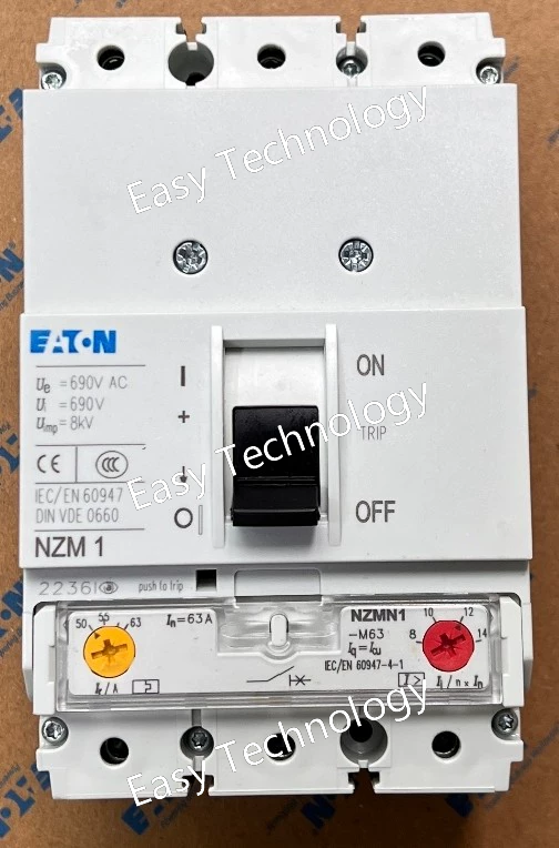 Technical Parameters Parameter Specification Model NZMN1-M63 Rated Current (In) 63 A Number of Poles 1P (Single Pole) Rated Voltage 230/400 V AC Rated Frequency 50/60 Hz Breaking Capacity 10 kA (at 400 V AC) Tripping Characteristic C Curve (Medium starting current) Electrical Life 10,000 operations Mechanical Life 20,000 operations Mounting DIN Rail (35mm) Terminal Type Screw Clamp Standards & Approvals IEC/EN 60898-1, CE