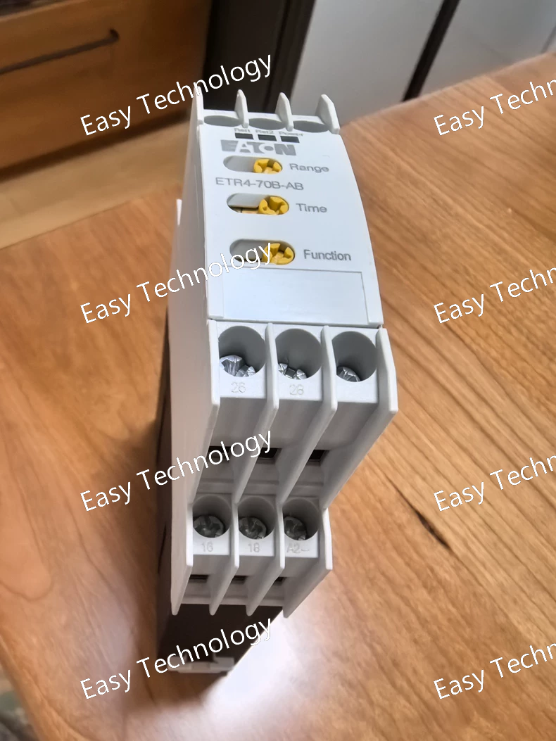 Technical Parameters) Parameter Specification Notes Model ETR4-70B-AB Electronic Time Relay Product Type Multi-function Timer Operating Voltage (Us) 24-240 V AC/DC This is a key feature of the "AB" suffix. Wide-range, auto-sensing supply. Timing Range 0.05s - 300h Extremely wide range, selectable via sub-ranges. Switching Capacity 8 A / 250 V AC (AC-1) 8 A / 30 V DC (DC-1) Resistive load ratings. Output Type 1 Changeover (CO) Relay Contact SPDT (1 normally open + 1 normally closed) Number of Time Ranges 7 Selectable via the rotary switch. Number of Functions 10+ e.g., On-delay, Off-delay, Interval, Star-Delta, Flasher. Repeat Accuracy < 0.5% of set value + 10 ms Mounting DIN Rail (35mm) Terminal Type Screw Clamp Degree of Protection IP20 (front), IP40 (terminal) Agency Approvals UL 508, CSA, CE, cULus, RoHS