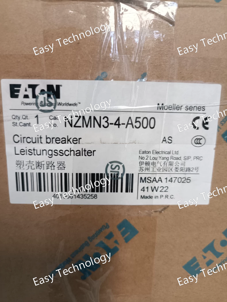 Key Parameters Category Description / Value Product Line Eaton NZMN3 Accessories Compatible Breakers NZMN3 series air circuit breakers of the specified frame size (Frame 4). Function Undervoltage Release (UVR) Rated Control Supply Voltage (Us) 400-415V AC / 500V AC (as indicated by "A500" suffix). The exact voltage must be confirmed by the order code sticker on the device itself. Mounting Mounts directly onto the compatible NZMN3 breaker. Operation The breaker can only be closed when the supply voltage is present and above the trip threshold. It automatically trips when the voltage drops below the threshold or is lost.