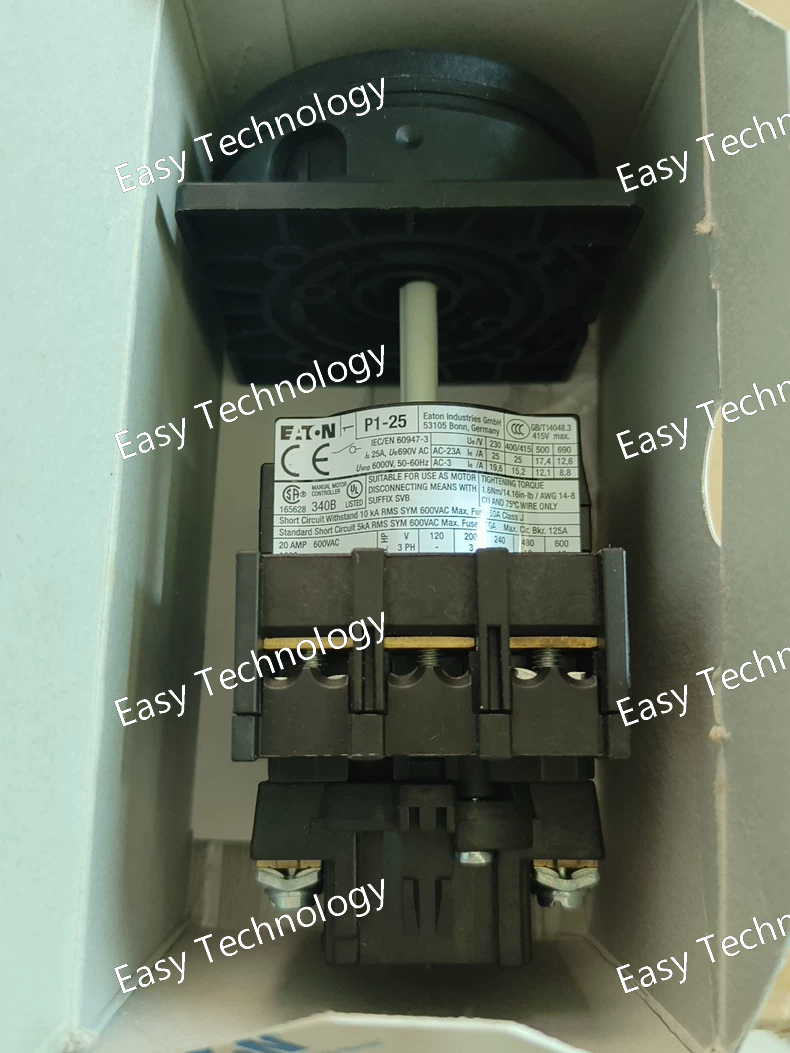 Key Parameters Category Description / Value Product Line Eaton Surge Protection Type / Class Type 1 (As indicated by "EA" code, for high-energy surges) Nominal Discharge Current (In) 25 kA (8/20 μs) Max. Discharge Current (Imax) Higher than In, e.g., 50 kA or 100 kA (Must be verified from datasheet). Voltage Protection Level (Up) A specific value, e.g., ≤ 2.5 kV (Must be verified from datasheet). Rated Voltage For AC systems, e.g., 230/400V. Connection Screw Terminals (as indicated by "SW") Standards Compliance IEC 61643-11 Status Indication Typically includes a visual indicator (e.g., green/red window) to show operational status. Mounting Designed for mounting on 35 mm top-hat rail (DIN rail).