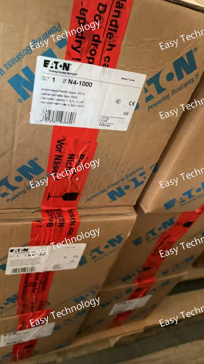Key Parameters Category Description / Value Product Line Eaton Air Circuit Breakers Series N4 Rated Current (Iₙ) 1000 A Poles 3-Pole & 4-Pole versions are available. Rated Operational Voltage (Uₑ) Up to 690 V AC, 50/60 Hz Rated Insulation Voltage (Uᵢ) 1000 V Rated Ultimate Short-Circuit Breaking Capacity (Iᶜᵘ) Very high, typically 65 kA to 100 kA at 400V AC (IEC 60947-2). The exact value must be verified from the technical data sheet. Trip Unit Type Standard "AS" Electronic Trip Unit • Provides adjustable protection functions (overload, short-circuit, and ground-fault). Operation Mechanism Manual stored-energy spring mechanism (allows for quick ON/OFF operation). Mounting Fixed Mounting (designed for bolted installation in switchgear panels) or Draw-out Version (available as an option). Standards Compliance IEC/EN 60947-2 Connection Primary power connections are typically made via busbars. Standard Accessories The "AS" version typically comes with a basic set of indicators and possibly a few built-in auxiliary contacts. A wide range of additional accessories are available.
