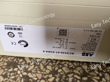 Technical Parameters Parameter Specification Model ACS530‑01‑03A4‑4 Drive Series ACS530 General Purpose Drives Drive Type Low‑Voltage AC Variable Frequency Drive (VFD) Rated Output Power 1.1 kW (approx. 1.5 HP) Rated Current (IEC) 3.3 A Input Voltage 3‑phase 380–480 V AC Input Frequency 50/60 Hz Output Frequency Range 0 – ~500 Hz Control Methods Standard V/f and sensorless vector control Enclosure / Protection IP20 / Open‑type Frame Size R1 Mounting Panel or cabinet installation Safety and Protection Overload, overcurrent, overvoltage, undervoltage protections User Interface Integrated control panel (LCD/keypad) Typical Applications Pumps, fans, conveyors, general machinery