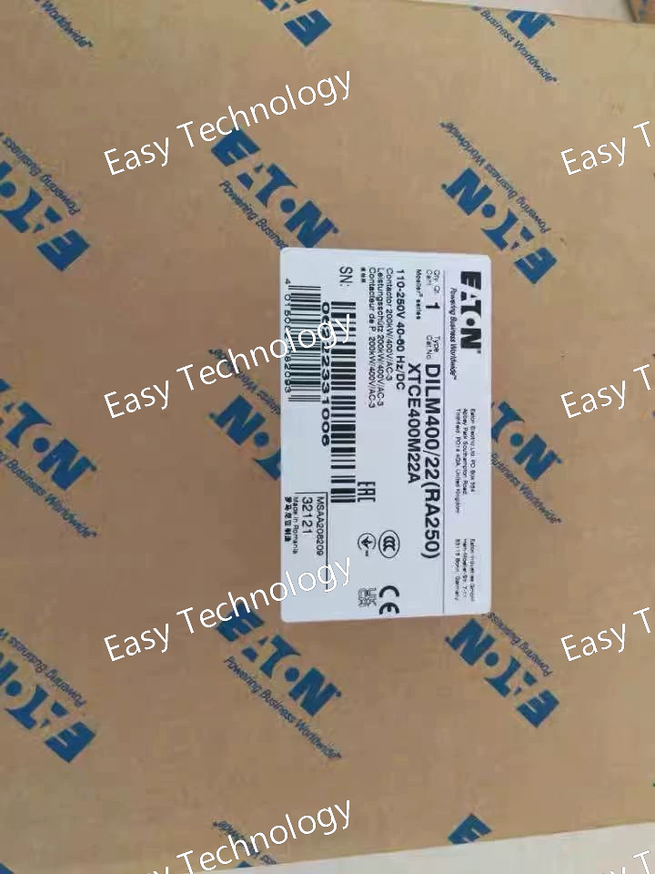 Key Parameters Category Description / Value Product Line Eaton DILM Model / Frame Size DILM400 Rated Operational Current (Iₑ) at AC-3 400 A (For squirrel-cage motors) Rated Operational Power at AC-3 ~ 200 kW / 268 HP at 400V 50Hz Rated Operational Voltage (Uₑ) Up to 1000 V AC, 50/60 Hz Rated Thermal Current (Iᵼₕ) 475 A Poles 3 (Main Contacts) Coil Control Voltage Standard factory setting is often 400V/500V AC. However, this is configurable. The exact voltage must be confirmed by the order code sticker on the device itself. Utilization Categories AC-3: Squirrel-cage motors AC-1: Non-inductive loads Standard Auxiliary Contacts 2 normally open (NO) contacts (as indicated by "/22") Integrated Adapter RA250 adapter pre-mounted, enabling quick installation of RCU250 modules. Electrical Durability Hundreds of thousands of operations (load-dependent) Mechanical Durability Millions of operations Standards Compliance IEC/EN 60947-4-1, UL 508, CSA C22.2 No. 14 Mounting Screw mounting via integrated feet or mounting plate. Connection Large screw terminals for main power connections.