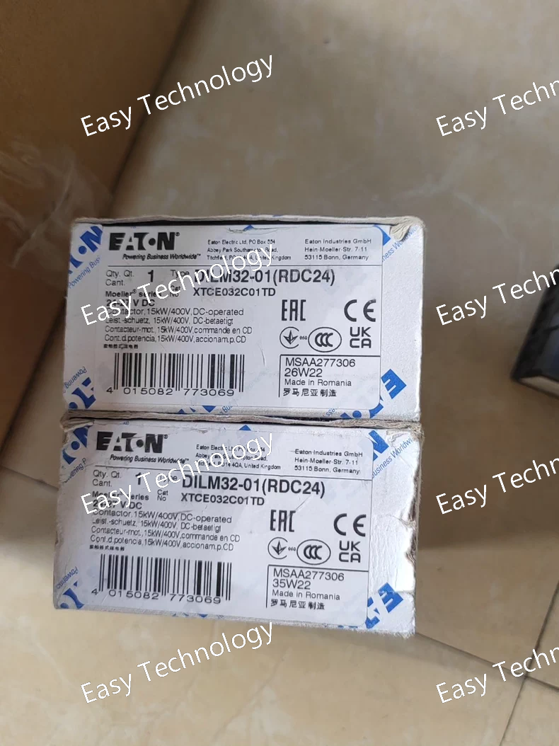 Key Parameters Category Description / Value Product Line Eaton DILM Model Type DILM32-01 Rated Operational Current (Iₑ) at AC-3 32 A (For squirrel-cage motors: Starting, switching off during running) Rated Operational Power at AC-3 ~ 15 kW / 20 HP at 400V 50Hz Rated Operational Voltage (Uₑ) Up to 690 V AC, 50/60 Hz Rated Thermal Current (Iᵼₕ) 40 A Poles 3 (Main Contacts) Coil Control Voltage AC - The specific voltage (e.g., 24V, 110V, 230V, 400V, 500V AC) must be confirmed by the order code sticker on the device itself. The "-01" suffix is consistent with an AC coil. Utilization Categories AC-3: Squirrel-cage motors (starting, switching off during running) AC-1: Non-inductive or slightly inductive loads (e.g., heaters) Electrical Durability Millions of operations (dependent on load) Mechanical Durability ~ 10 - 15 million operations Standards Compliance IEC/EN 60947-4-1, UL 508, CSA C22.2 No. 14 Mounting Snap-on mounting on 35 mm symmetrical top-hat rail (DIN rail) or via screw mounting using the integrated feet. Connection Cage Clamp terminal technology for easy wiring without tools. Auxiliary Contacts Typically, at least 1 normally open (NO) auxiliary contact is included as standard and can be mounted on the front. Additional auxiliary contact blocks (e.g., DILEM...), mechanical interlocks, and timer modules are available as accessories.