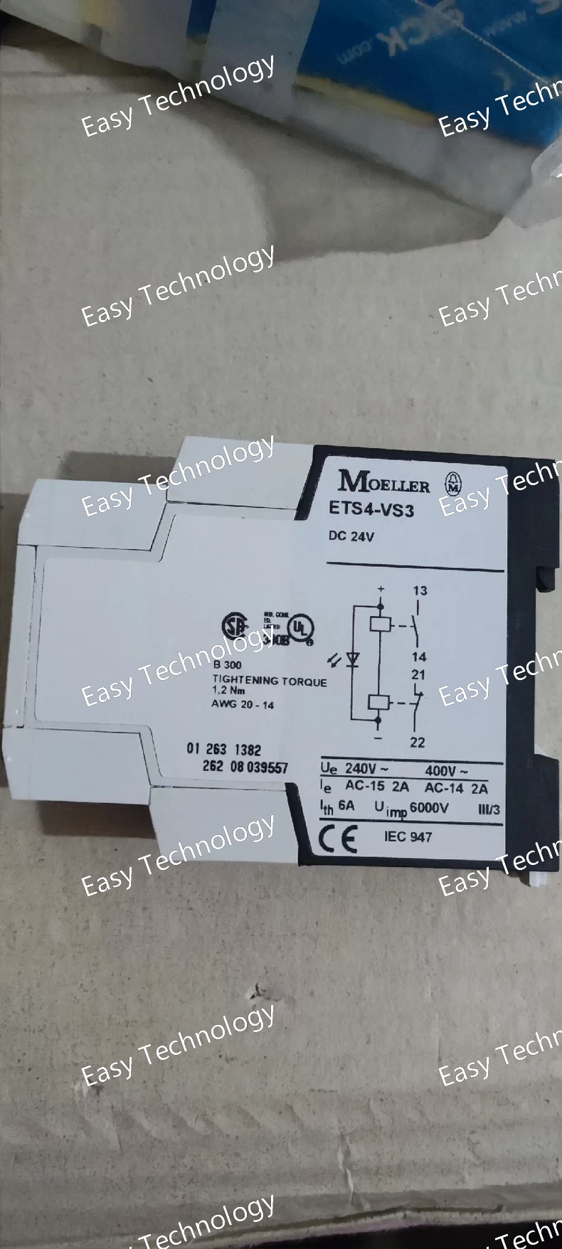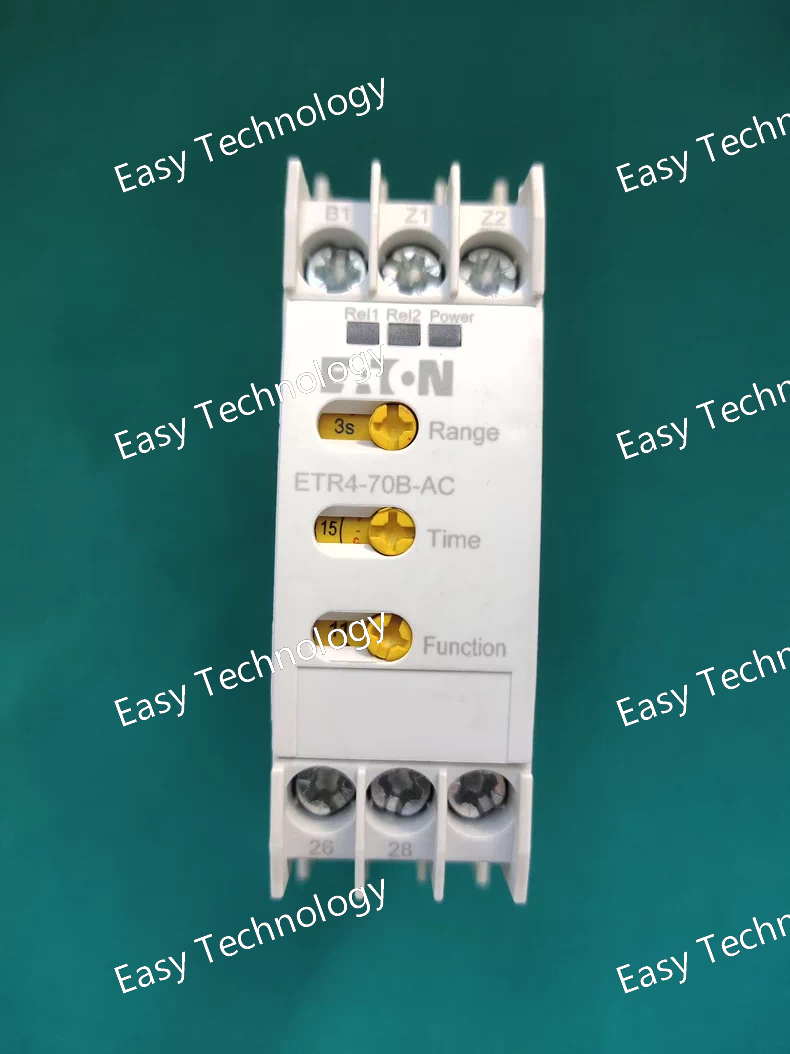 Key Parameters Category Description / Value Product Line Eaton ETS (Time Relays) Series ETS4 Function Star-Delta Changeover (with two independently adjustable times) Adjustable Times • T1 (Star Time): Adjustable range, e.g., 0.05s - 100h • T2 (Pause Time): Adjustable range, e.g., 0.05s - 100h Supply Voltage Wide range, typically 24-240V AC/DC (The exact range must be confirmed by the order code sticker on the device itself). Output Contacts Typically 2 Changeover (CO) Contacts (e.g., 2 NO/NC contacts) with a specific switching capacity. Time Setting Digital via rotary switches or pushbuttons with an LED display. Mounting Snap-on mounting on 35 mm top-hat rail (DIN rail). Connection Screw terminals or spring-cage terminals. Standards Compliance IEC/EN 60947-5-1
