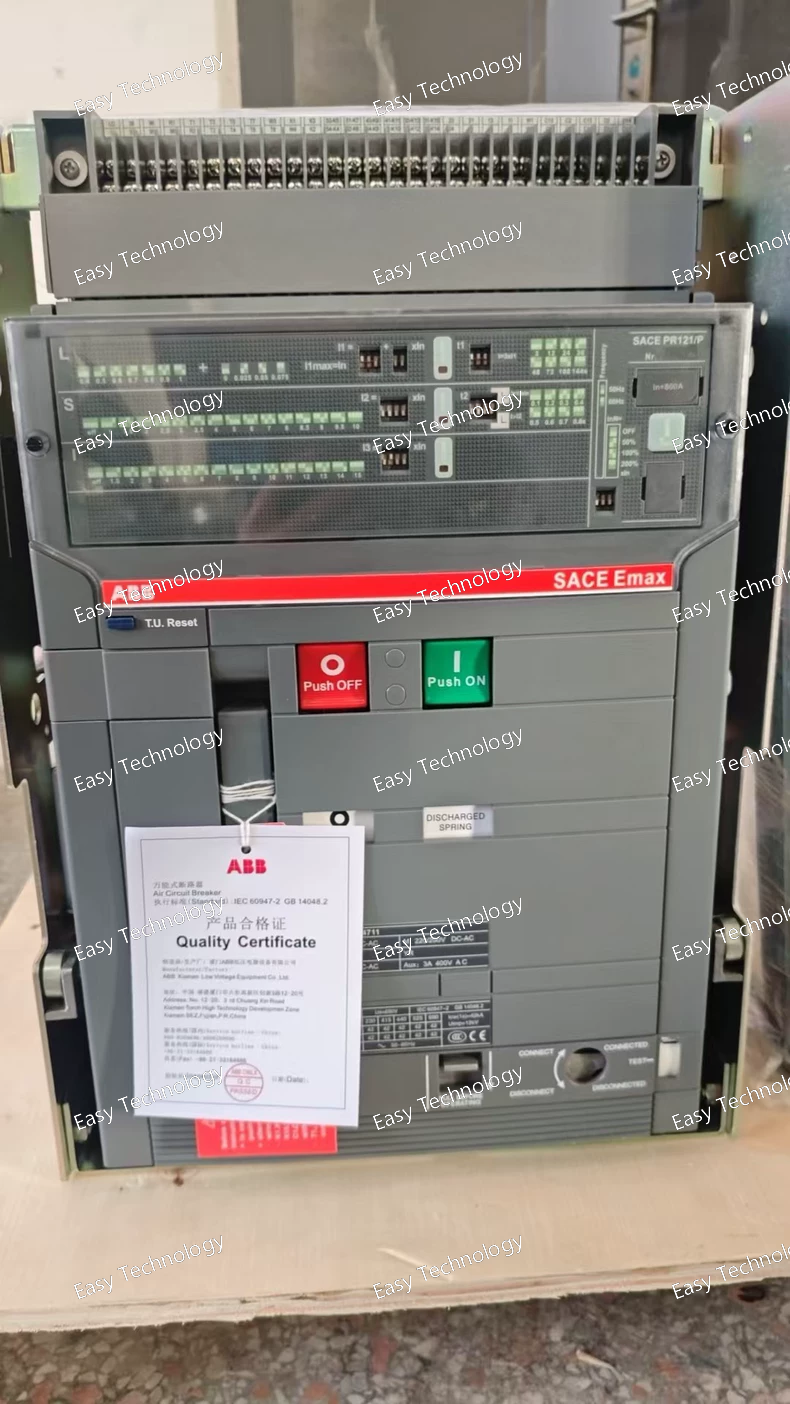 Parameters: Model Number: ABB E1N800 R400/630/800 3/4P Rated Voltage: AC 690 V (for three-phase systems) Rated Current: 400A, 630A, 800A (adjustable depending on the configuration) Rated Frequency: 50/60 Hz Number of Poles: 3P (three-pole) or 4P (four-pole) Protection Type: Long-Time Protection (L): Adjustable from 0.7 to 1.0 times rated current, offering protection against overload by monitoring prolonged overcurrent conditions. Short-Time Protection (S): Adjustable from 3 to 10 times rated current, with a time delay, providing protection from short-circuit faults while allowing motor startup. Instantaneous Protection (I): Provides instantaneous disconnection in case of severe short-circuit conditions, ensuring immediate protection from high fault currents. Ground Fault Protection (G): Ground fault protection (LSI) detects leakage currents, providing early warning and isolating the faulty section to prevent electrical hazards. Thermal Overload Protection: Continuously monitors the system's temperature, offering protection against sustained overload conditions that could cause overheating. Breaking Capacity (Icu): 50 kA at 400V, ensuring that the breaker can safely interrupt high fault currents without damage to the system. Mounting Type: DIN rail mountable or panel mountable for easy integration into motor control centers (MCCs), distribution panels, and electrical control systems. Protection Class: IP20 (for indoor use; additional external kits are available for more demanding environments). Weight: Approx. 10–20 kg, depending on the rated current and configuration. Dimensions (H x W x D): Approx. 300 x 200 x 180 mm (varies depending on rated current configuration). Control Voltage: 24 V DC (or 48 V DC depending on configuration) for remote control and monitoring features. Communication Protocols: Supports Modbus RTU, Profibus, and Ethernet communication for remote diagnostics and integration with PLC or SCADA systems. Auxiliary Contacts (Optional): Available for fault signaling, system status updates, and integration with automation control systems.