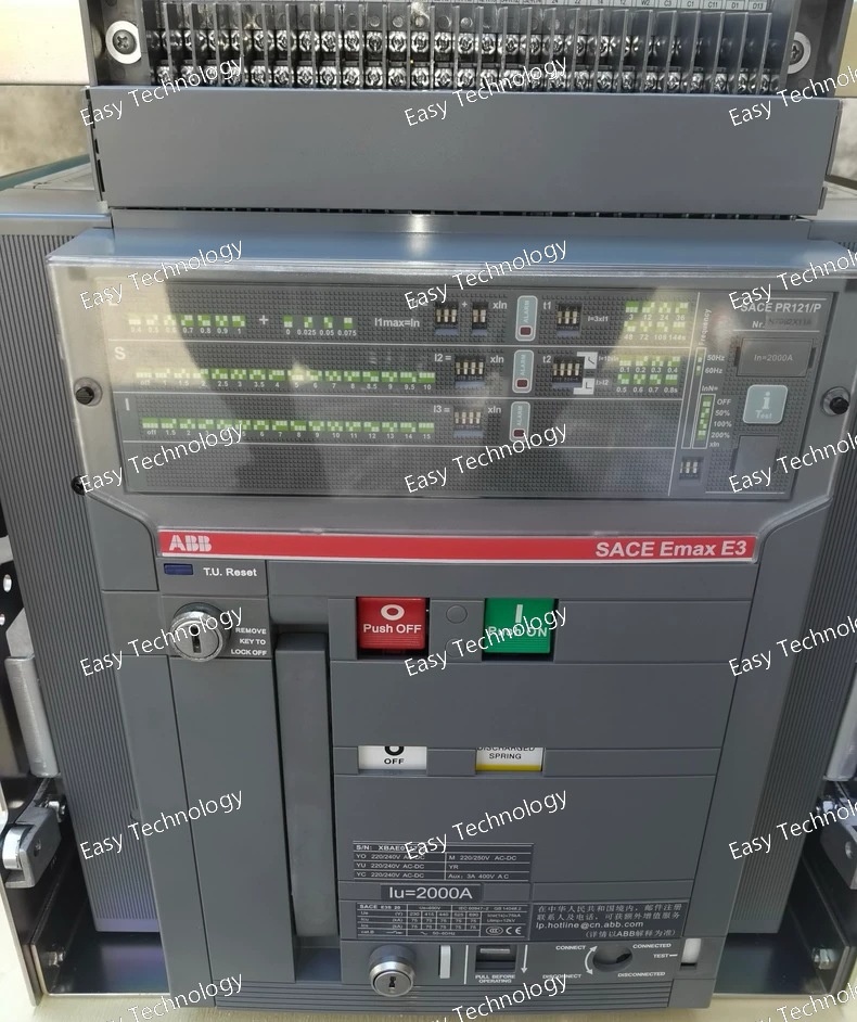 Parameters: Model Number: ABB SACE Emax E2 2000A PR122/P-LSI 3P Rated Voltage: 400 V AC (Three-phase) Rated Current: 2000 A (adjustable) Frequency: 50/60 Hz Protection Type: Long-Time Protection (L): Adjustable from 0.7 to 1.0 times rated current for overload protection, protecting against prolonged overcurrents that can damage equipment. Short-Time Protection (S): Adjustable from 3 to 10 times rated current, with a time delay, for short-circuit protection. This helps protect the system from fault conditions while avoiding unnecessary trips. Instantaneous Protection (I): Provides instantaneous disconnection in case of severe short-circuit conditions, protecting sensitive equipment from high fault currents. Ground Fault Protection (G): Ground fault protection (LSI) detects leakage currents and isolates the faulty section of the system, improving safety and reducing the risk of electrical hazards. Thermal Overload Protection: Protects against overheating by continuously monitoring the system's temperature and adjusting protection parameters accordingly. Breaking Capacity (Icu): 70 kA at 400 V, allowing for safe interruption of high fault currents, preventing damage to the system and connected equipment. Mounting Type: DIN rail or panel mount, making it easy to install in motor control centers (MCCs), distribution panels, and electrical control systems. Degree of Protection: IP20 (suitable for indoor applications; external protection kits can be added for harsher environments). Weight: Approx. 45–55 kg (depending on configuration). Dimensions (H x W x D): Approx. 650 x 500 x 250 mm (subject to configuration). Control Voltage: 24 V DC (external supply required for control and communication features). Communication Protocols: Modbus RTU, Profibus, and Ethernet for real-time remote monitoring, diagnostics, and control via PLC or SCADA systems. Auxiliary Contacts (Optional): Available for integrating into control systems for signaling faults and providing system status updates.
