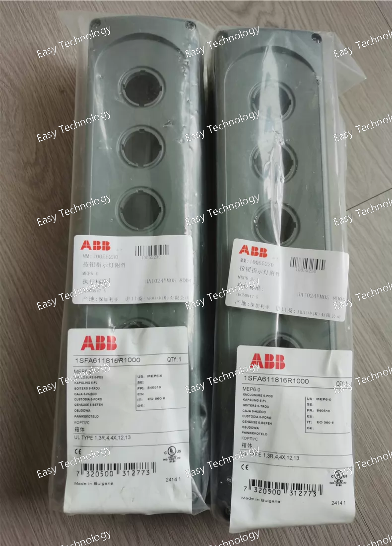 Technical Specifications Specification Value Manufacturer ABB Model / Part Number MEP6‑0 Product Type Empty Pushbutton Enclosure Housing Material Plastic (Polycarbonate) Color Dark Gray / Light Gray Number of Holes / Seats 6 positions Operator Mounting Size 22 mm Compatibility Modular & compact range pilot devices Protection Rating IP66 (dust tight & strong water protection) NEMA Rating 1, 3R, 4, 4X, 12, 13 Standards CE Certified, RoHS Compliant Operating Temperature Up to approx. 70 °C Mounting Style Base or panel mounting Included Hardware Stainless steel screws Typical Use Industrial control panels, pendant stations