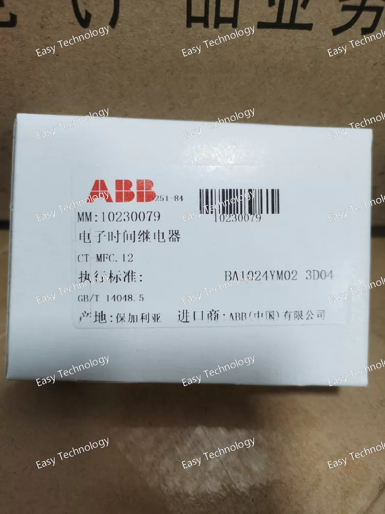 Technical Specifications Specification Value Product Name ABB CT‑MFC.12 Product Type Multifunction Time Relay Model / Part Number CT‑MFC.12 (1SVR508020R0000) Manufacturer ABB Supply Voltage 24–240 V AC / 24–48 V DC Timing Functions Multiple functions including ON‑delay, OFF‑delay, impulse ON, impulse OFF, flasher starting with ON/OFF, pulse former Time Range 0.05 s to 100 h Contact Configuration 1 changeover contact (SPDT / 1 C/O) Rated Current (Contact) Up to 4 A Rated Operational Voltage (Contact) Up to 250 V AC Rated Frequency 50/60 Hz Mounting Type DIN Rail (35 mm standard) Terminal Type Screw terminals Operating Temperature Range Approx. –20 °C to +60 °C Housing Width Approx. 17.5 mm Height Approx. 70 mm Depth Approx. 63 mm Protection Rating Terminals IP20 / Housing up to IP50 (varies by installation) Weight Approx. 0.05 kg Typical Use Control automation timing and sequence functions