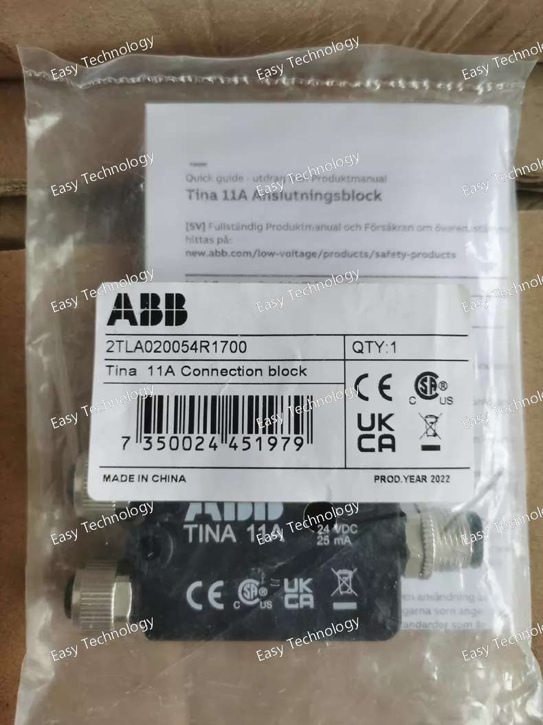 Parameter Specification Product Series TINA (Terra Indicating and Auxiliary) Relay Series Device Type Monostable, Electromechanical Latching Relay (with auxiliary contact) Order Code / Article Number 2TLA20054R1700 Coil Data (Control Circuit) - Coil Voltage (Standard) 24 V DC (Other voltages available, e.g., 12V DC, 24-230V AC/DC. Must be verified for this specific article number). - Coil Power Consumption Typically ~0.9 W (for DC coil) / ~1.3 VA (for AC coil) Contact Data (Main Circuit) - Number & Configuration of Main Contacts 2 Changeover (CO) / Form C contacts. (1 NO + 1 NC per contact pair). - Rated Operational Current (Ie) 10 A @ 250 V AC - Rated Operational Voltage (Ue) Up to 400 V AC / 250 V DC - Rated Thermal Current (Ith) 16 A - Switching Capacity (Resistive Load) AC-1: Up to 4000 VA DC-1: Up to 60 W Auxiliary Contact (Indicator) - Configuration 1 Normally Open (NO) / Form A contact. - Rated Operational Current (Ie) Typically 6 A @ 250 V AC. Mechanical & Electrical Life - Mechanical Endurance ≥ 10 x 10⁶ operations - Electrical Endurance (at rated load) ≥ 0.2 x 10⁶ operations Switching Time Typically ~10 ms Mounting 35 mm symmetrical DIN rail (EN 60715) via optional mounting base (e.g., ABB TINA Base). Can also be panel-mounted. Terminal Type Screw clamp terminals. Connection Capacity Up to 2.5 mm² (flexible with ferrule) / 4 mm² (rigid) Ambient Temperature (Operation) -40°C to +70°C Protection Degree IP40 (with base), IP20 (terminals) Standards Compliance IEC/EN 61810-1, IEC/EN 60947-5-1