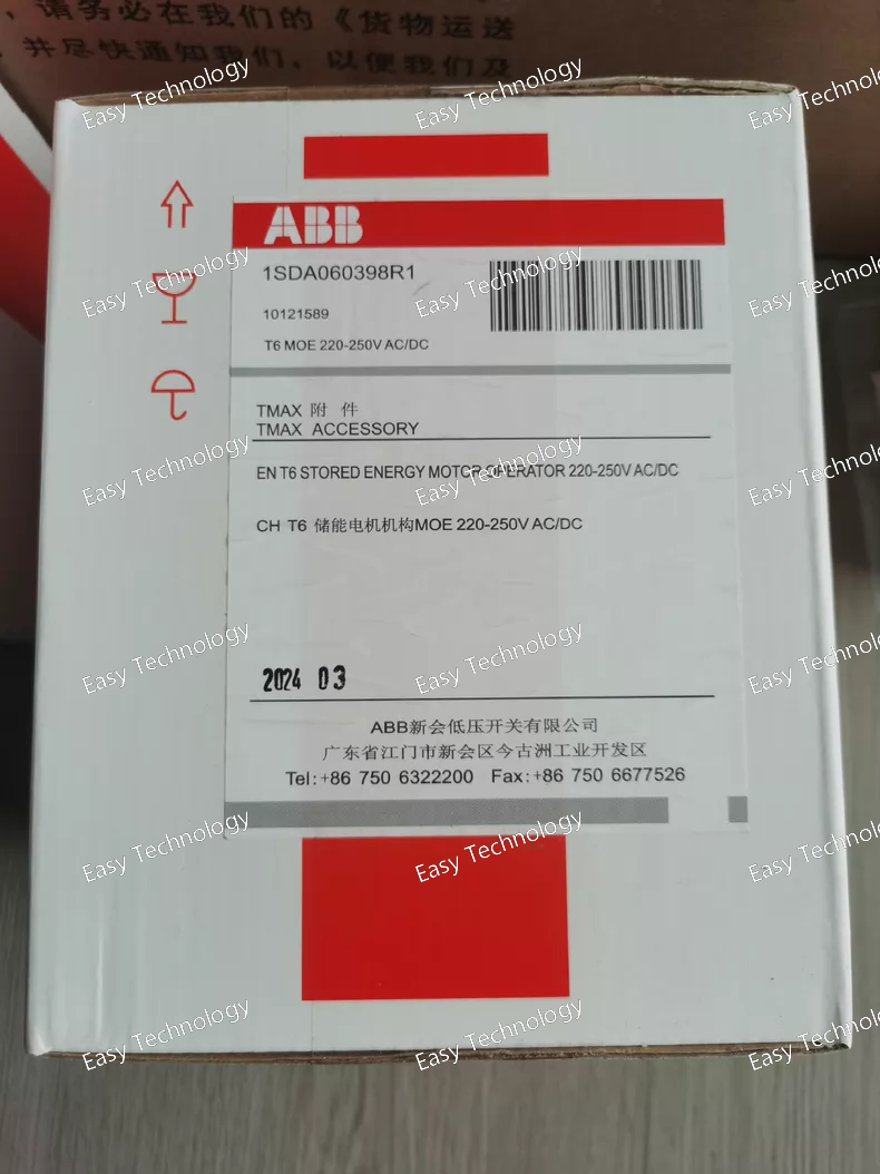 Technical Parameters Electrical Ratings Rated Control Supply Voltage (Ur): 220–250 V AC / 220–250 V DC (AC and DC compatible) Current Type: Both AC and DC control input accepted Suitable Product Family: Accessories for Tmax T6 series molded‑case circuit breakers Standards: Designed and tested to relevant IEC standards for motor operators Mechanical / Functional Type of Mechanism: Stored‑energy motor operator — charges an internal spring or energy store and then actuates the breaker Operation: Enables remote electrical opening and closing of Tmax T6 breakers Configuration Type: Loose or configurable accessory (can be integrated into breaker assembly) Compatibility Compatible With: ABB Tmax T6 frame MCCBs Product Main Type: Accessory (motor operator) Often used for automated switching, interlocking systems, and remote control applications Physical / Mechanical Approx. Weight: ~3.3–3.4 kg Product Dimensions: Typical accessory module size (compact motor‑drive unit) Mounting: Designed to mount on or integrate with compatible Tmax‑series breakers Environmental Designed For: Industrial distribution board and switchgear environments Operating Conditions: Suitable for typical electrical panel ambient conditions and industrial usage