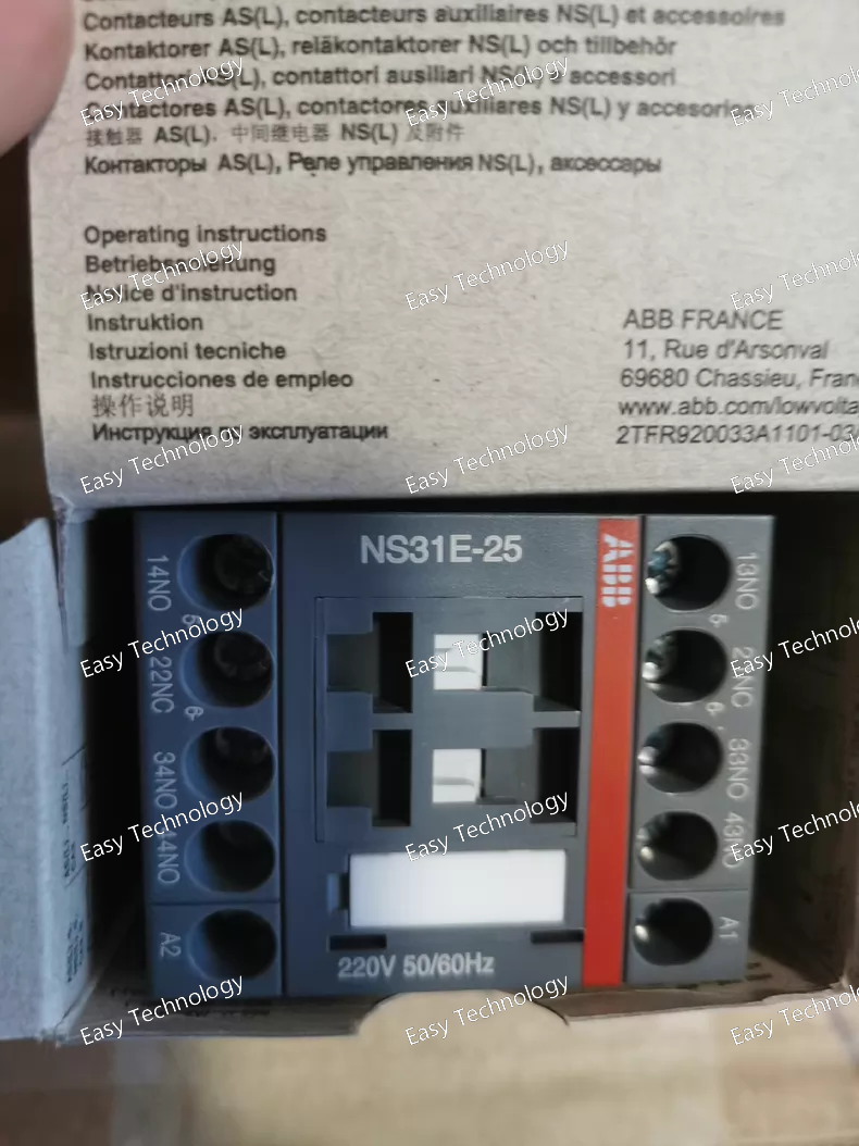 Technical Parameters Control & Contact Configuration Product Type: Contactor Relay (Auxiliary Contact Switching Unit) Number of Poles (Contacts): 4 3 Normally Open (3 NO) 1 Normally Closed (1 NC) Rated Control (Coil) Voltage: 220 V AC, 50/60 Hz Coil Type: AC magnetic coil actuation Electrical Ratings Rated Operational Voltage (Main & Auxiliary): up to 690 V AC Conventional Free‑Air Thermal Current (Ith): ~10 A (typical auxiliary circuit rating) Rated Operational Current (AC‑15): ~4 A @ 220 / 240 V AC ~3 A @ 400 / 440 V AC ~2 A @ 500 / 690 V AC Rated Operational Current (DC‑13): ~6 A @ 24 V DC ~0.55 A @ 110 V DC ~0.27 A @ 220 / 250 V DC Rated Insulation Voltage (Ui): ~690 V AC Rated Impulse Withstand Voltage (Uimp): ~6 kV Short‑Time Withstand Current (Icw): ~140 A for 0.1 s ~100 A for 1 s Switching Frequency: AC‑15: ~1200 operations/hour DC‑13: ~900 operations/hour Mechanical & Installation Terminal Type: Screw or spring terminals depending on configuration Connection Capacity: standard industrial wire sizes compatible with auxiliary control circuits Mounting: DIN‑rail or panel mount Mechanical Endurance: Designed for high cycle life in control applications Environmental & Physical Operating Ambient Temperature: approx. −40 °C to +70 °C Degree of Protection: typically IP20 (installed inside panel) Dimensions: Compact relay form factor Approximate Weight: ~0.20–0.25 kg
