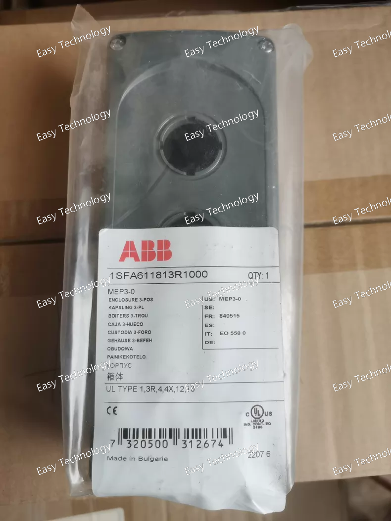 Technical Parameters General & Mechanical Product Type: Empty enclosure for pilot devices Operator Positions: 3 seats (for mounting pushbuttons, selector switches, indicator lights, etc.) Material: High‑quality polycarbonate / durable plastic Color: Dark grey over light grey Mounting Type: Rear mounting (panel or enclosure) Cover Type: Lift‑off screw cover Fasteners: Stainless steel screws included Dimensions Width: approx. 0.181 m Height: approx. 0.061 m Depth: approx. 0.075 m Net Weight: approx. 0.116 kg Environmental Protection IP Rating: IP66 (dust tight and protected against powerful water jets) NEMA Ratings: Type 1, 3R, 4, 4X, 12, 13 (suitable for various industrial environments) Operating Temperature Range: approx. –25 °C to +70 °C Storage Temperature Range: approx. –40 °C to +85 °C Compatibility Designed for use with ABB modular and compact range pilot devices and contact blocks Suitable for mounting indicator lights, pushbuttons, emergency stops, selector switches, etc. Standards & Compliance CE compliant RoHS compliant