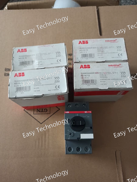 Technical Parameters Parameter Specification Series ABB MS116 Product Type Miniature Circuit Breaker (MCB) Order Code / Article Number MS116-0.63 Number of Poles 1-Pole (1P) Rated Current (In) 0.63 A Tripping Characteristic C-Curve (Typical for this series. Provides instantaneous trip between 5-10x In, i.e., ~3.15A to 6.3A). Rated Operational Voltage (Ue) 240/415V AC Rated Insulation Voltage (Ui) 440V AC Rated Impulse Withstand Voltage (Uimp) 4 kV Rated Frequency 50/60 Hz Breaking Capacity Typically 6 kA (at 400V AC, according to IEC/EN 60898-1) Terminals Screw-type terminals, suitable for conductors typically up to 16 mm² (please verify for 0.63A model). Terminal Torque 1.5 - 2.0 N·m (Standard) Mounting DIN Rail (35mm) mounting Electrical Durability ≥ 10,000 operations Mechanical Durability ≥ 20,000 operations Standards Compliance IEC/EN 60898-1 (Primary standard) & IEC/EN 60947-2 (For industrial applications) Ambient Temperature -25°C to +55°C (for calibration), operation up to +60°C Weight Approx. 0.08 kg