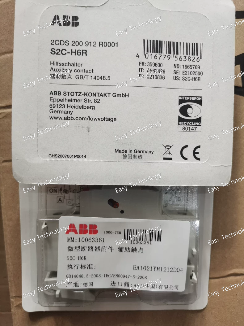 Technical Parameters Parameter Specification Series ABB Form 2a / Tmax (S2C Series) Product Type Moulded Case Circuit Breaker (MCCB) with Fixed Thermal-Magnetic Trip Unit Order Code S2C-H6R Number of Poles 3-Pole Rated Current (In) 100 A (The "6" in H6R often corresponds to a frame size rating, with 100A being a standard value for this frame). Rated Ultimate Short-Circuit Breaking Capacity (Icu) Typically 50 kA or 70 kA at 415V AC (This is the key feature of the "H"-rated version. Must confirm with local catalog). Rated Service Short-Circuit Breaking Capacity (Ics) Typically 100% of Icu for this series (e.g., 50 kA). Trip Unit Type Fixed Thermal-Magnetic (H-Type) Overload Protection (Ir) Fixed at In (100 A). Thermal adjustment is typically not available on "R" versions. Short-Circuit Protection (Im) Fixed High Magnetic Setting. Typically set at 12 x In (1200 A) or higher. Non-adjustable. Rated Operational Voltage (Ue) 690V AC Rated Insulation Voltage (Ui) 1000V AC Rated Impulse Withstand Voltage (Uimp) 12 kV Rated Frequency 50/60 Hz Electrical Durability Up to 8,000 operations at In Mechanical Durability Up to 20,000 operations Mounting Fixed Mounting (for panel assembly) Connection Front and/or rear connection. Suitable for busbar or cable connection. Standards Compliance IEC/EN 60947-1, IEC/EN 60947-2 Operating Ambient Temperature -25°C to +70°C (Derating may apply above 40°C) Accessories Compatible with a wide range of ABB accessories: auxiliary contacts (OF, SD), shunt trips, undervoltage releases, handle extensions, etc.