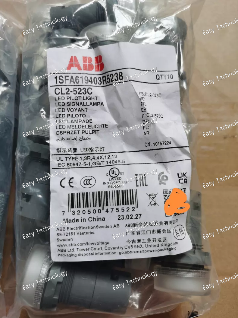 Technical Parameters General Product Type: Illuminated pilot light Model: CL2‑523C Series: CL2 compact pilot devices Lens Color: Clear / transparent Indicator Type: LED illumination Panel Mounting Size: 30 mm nominal cut‑out Electrical Rated Operational Voltage: 230 V AC Rated Frequency: 50 Hz / 60 Hz Current Consumption: ~17 mA Light Source: Integrated LED (no replaceable bulb) Base Type: BA9s‑style mount (LED lamp integrated) Rated Insulation Voltage: Suitable for low‑voltage control circuits Mechanical & Connection Terminal Type: Screw clamp terminals Connecting Capacity: Flexible with ferrule: 0.75 … 2.5 mm² Solid: 0.75 … 2.5 mm² Wire Stripping Length: ~8 mm Tightening Torque: ~0.9 N·m Dimensions (approx): Width: ~30 mm Depth: ~52 mm Net Weight: ~0.018 kg Environmental & Protection Operating Temperature Range: –25 °C to +70 °C Storage Temperature Range: –40 °C to +85 °C Ingress Protection: Front: IP66 / IP67 / IP69K (high dust & water resistance) Terminals: IP20 NEMA / Enclosure Ratings: NEMA 1 / 3R / 4 / 4X / 12 / 13 (when correctly installed in a panel) Pollution Degree: Industrial environments Applications Visual status indication in control panels and switchboards Fault or power‑on indication for machines and equipment OEM electrical panels and automation systems Status signaling in manufacturing and process controls