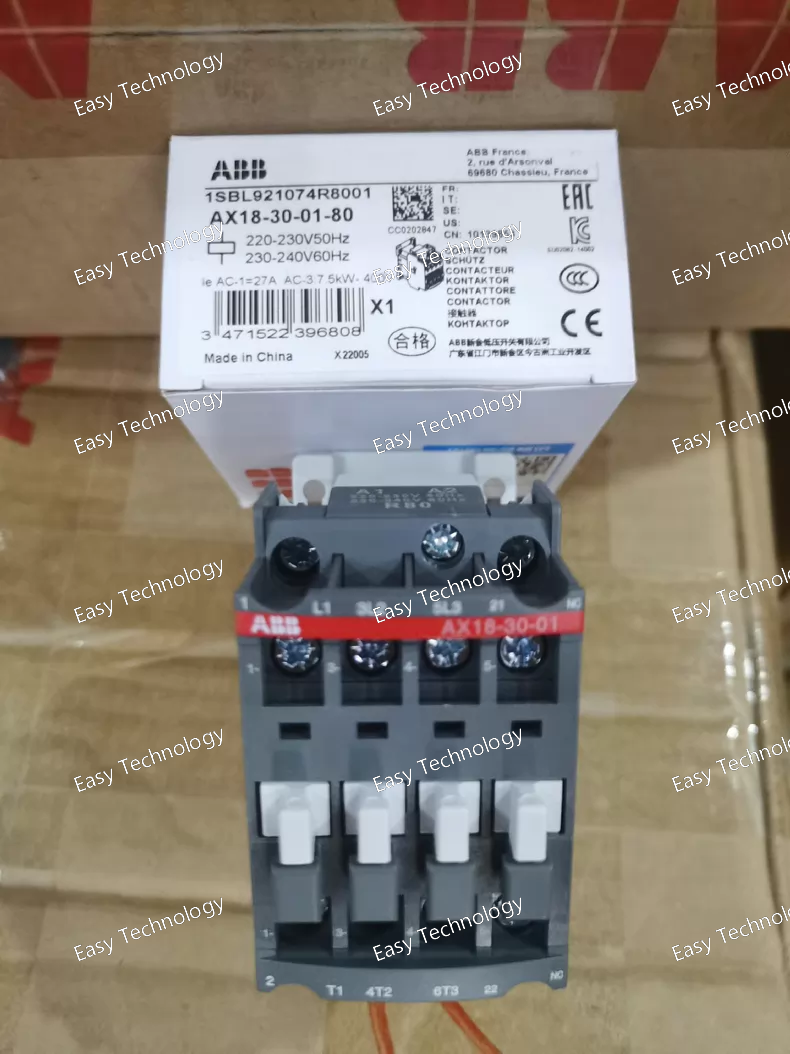 Technical Parameters General Product Type: AC magnetic contactor Model: AX18‑30‑01‑80 Series: AX family of contactors Poles: 3 main power poles Auxiliary Contacts: 0 Normally Open (NO), 1 Normally Closed (NC) Electrical Ratings Rated Operational Current (AC‑3): ~18 A (typical for this size) Rated Operational Current (AC‑1): Higher capacity for non‑motor loads Rated Insulation Voltage (Ui): ~690 V AC Rated Operational Voltage: Up to ~690 V AC (main circuit) Control (Coil) Voltage: Variant ‑80 typically indicates coil rated for 220–230 V AC at 50/60 Hz Other coil voltages may be available in the same series (e.g., 24 V, 110 V, 380–415 V AC) Control / Coil Coil Type: AC operated electromagnetic Coil Frequency: Compatible with 50 Hz and 60 Hz supplies Coil Operating Range: Designed to operate reliably at the rated coil voltage with standard tolerances Performance Motor Rated Operational Power (AC‑3): Suitable for motors in the range typical for ~18 A contactor frame (e.g., ~4 kW at 400 V AC) Switching Capacity: Appropriate for general AC loads and motor circuits Electrical Endurance: Designed for frequent switching operations Mechanical Endurance: High life expectancy under normal use Mechanical & Installation Mounting: DIN‑rail or screw panel mounting Terminal Type: Screw clamp terminals for main and auxiliary circuits Contact Material: Industrial‑grade alloy for reliable switching Compact Construction: Saves panel space Environmental Operating Ambient Temperature: Standard industrial range (e.g., −25 °C to +70 °C) Storage Temperature: Typical extended ambient range Pollution Degree: Suitable for industrial environments Standards & Compliance Designed to meet common low‑voltage control and switching equipment standards (IEC/EN 60947 series) Applications Control of three‑phase motors in starters and automation systems General AC load switching in control panels Industrial control and power distribution circuits Integration with overload relays and control logic assemblies