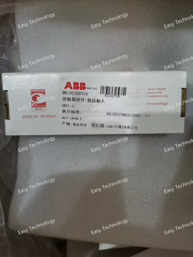 Technical Parameters General Product Type: Auxiliary contact block Model: HKF1‑11 Mounting Type: Front / top mount accessory for compatible starters and contactors Series / Compatibility: Suitable for modular control devices such as MS116, MS132, MS165 manual motor protectors and similar devices Contact Configuration: 1 × Normally Open (NO) + 1 × Normally Closed (NC) Electrical Ratings Rated Insulation Voltage (Ui): ~690 V Rated Operational Voltage (Ue): Suitable for control/auxiliary circuits up to industrial control voltages Rated Operational Current: Typical auxiliary circuit rating suitable for 1–6 A loads (control/feedback circuits) Rated Impulse Withstand Voltage (Uimp): Elevated to standard auxiliary device limits Contact Type: Silver‑based (or equivalent) industrial contact material Mechanical Terminal Connection: Screw terminal type Installation Orientation: Front / top mounting onto starter body Mechanical Life: High cycle capability for frequent auxiliary feedback operations Contact Actuation: Operates with main starter contacts Performance Switching Frequency: Designed for auxiliary control switching load cycles Compatibility With Motor Protection: Works alongside overload/trip feedback and interlock functions Physical & Dimensions Compact Modular Design: Space‑efficient mounting Weight: Lightweight accessory Construction: Durable industrial‑grade plastic and metal parts for robust panel use Environmental Operating Temperature Range: Typical industrial ambient temperatures Pollution Degree: Designed for typical industrial environments Ingress Protection: IP20 at terminals; front mounting in panel can offer additional protection Applications Adding auxiliary feedback to manual motor starters Providing interlocking contacts for control logic circuits Status signaling to PLCs and control systems Enhancing control panel logic with NO/NC feedback Use in motor control centers and industrial automation panels
