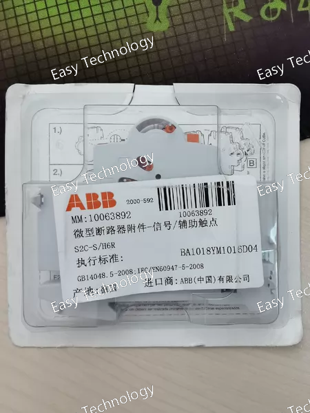 Technical Parameters General Product Type: Auxiliary / signal contact accessory Model: S2C‑S/H6R Compatibility: Designed for use with ABB System Pro M Compact devices including miniature circuit breakers (e.g., S200, S200M, S200P, S200S), SN201 series, RCCBs (F200), and RCBOs (DS201, DS202C) Mounting Position: Right side of main protective device Selector Function: Option to indicate either device contact position or fault condition Contact Configuration Contact Type: Auxiliary contact for status signaling Contact Changeover Selector: Changeover indication mode (breaker position vs. fault signal) Typical Output: Signal suitable for control circuits (wired back to PLC, indicator lamp, alarm panel, etc.) Electrical Ratings Rated Current: Suitable for auxiliary loads (control/indication) — typically up to 6 A Rated Voltage: Compatible with control voltage ranges up to approx. 250 V AC / 110 V DC (control/auxiliary signaling circuits) Coil / Switching Duty: Designed for AC‑12 / DC‑12 utilization categories (control and signaling use) Mechanical & Installation Mounting: Snap‑on / side‑mounted onto breaker body Terminal Connections: Screw terminals for secure interconnection of control/indicator wiring Number of Contacts: One auxiliary contact with selector function for status feedback Physical Width: ~8.8 mm Height: ~85 mm Depth: ~69 mm Weight: Lightweight compact accessory Construction: Durable industrial plastic and metal components for panel use Environmental Operating Temperature Range: Suitable for standard industrial ambient conditions Pollution Degree: Typical for control panels and distribution boards Applications Remote signal of breaker ON/OFF/trip status Feedback to PLC or automation systems Activation of alarm circuits on fault condition Control panel status indication lamps and annunciators Enhanced safety/monitoring of protective devices