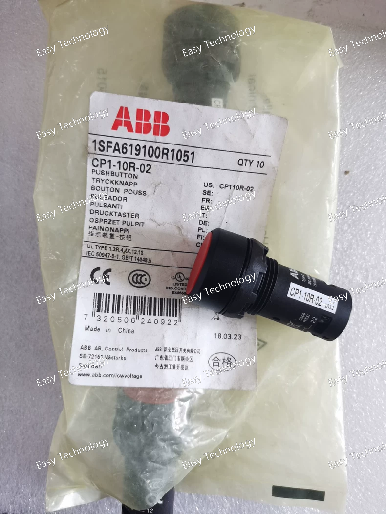 Technical Parameters General Product Type: Compact pushbutton switch Model: CP1‑10R‑02 Actuator Style: Flush pushbutton Actuator Color: Red Design: Non‑illuminated, momentary (spring return) Contact Configuration: 0 Normally Open (NO), 2 Normally Closed (NC) contacts Series: CP1 compact pilot devices Mounting: Panel mount (standard 22 mm hole) Electrical Ratings Rated Insulation Voltage (Ui): Up to ~300 V Rated Impulse Withstand Voltage (Uimp): ~6 kV Rated Operational Voltage: Up to ~300 V AC/DC Rated Operational Current (AC‑15): Up to ~1 A (e.g., 240 V AC) Rated Operational Current (DC‑13): Up to ~0.3 A at 24 V DC; ~0.2 A at 125 V DC Power Loss: Maximum ~5 W Mechanical & Physical Actuation: Momentary pushbutton (returns when released) Mechanical Durability: Approx. 0.5 million operations Terminal Type: Screw clamp terminals Connection Capacity: Flexible or solid conductors ~0.5–1.5 mm² Tightening Torque: Approx. 0.8–1.0 N·m Wire Stripping Length: Approx. 6 mm Weight: ~0.022 kg Dimensions: Width: ~30 mm Height: ~30 mm Depth: ~55 mm Environmental & Protection Front Protection Rating: IP66 / IP67 / IP69K (dust/water protection when installed) Terminal Protection: IP20 Operating Ambient Temperature: ~‑25 °C to +70 °C Storage Temperature: ~‑40 °C to +85 °C Pollution Degree: Suitable for industrial environments Enclosure/NEMA Types: Type 1 / Type 12 / Type 13 / Type 3R / Type 4 / Type 4X (depending on installation and sealing) Applications Start/stop and control signaling Machine panel operator interfaces Manual trigger in automation systems Industrial control and safety circuits