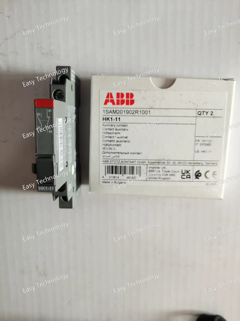 Technical Parameters General Product Type: Auxiliary contact block Model: HK1‑11 Contact Configuration: 1 × Normally Open (NO) + 1 × Normally Closed (NC) Mounting Type: Side or front mount accessory (designed to attach to compatible manual motor starters or contactors) Compatible With: Motor starters and control devices such as MS116, MS132, MS165 series and similar units Series/Application: Auxiliary switch accessory for control and signaling Electrical Ratings Rated Operational Voltage: Up to approximately 690 V AC / 600 V DC Rated Current: Typical auxiliary circuit rating such as 1 – 6 A depending on application and variant Rated Insulation Voltage: Suitable for industrial control circuit limits Rated Impulse Withstand Voltage: High enough for industrial accessory roles Switching Capacity: Suitable for control and feedback applications, not for main power breaking Mechanical Terminal Connection: Screw terminal type for auxiliary wiring Contact Actuation: Auxiliary contacts operate in conjunction with the main switching element of the host starter or contactor Compact Construction: Space‑efficient design to fit alongside primary device Installation: Snap‑on or side mount to manual motor starters or control devices without separate panel mount Environmental & Operating Operating Temperature Range: Typical industrial ambient range (e.g., approx. −25 °C to +60 °C) Storage Temperature: Extended range for transport and storage Protection Rating: Auxiliary contact body suited to typical indoor control panel environments Mechanical Durability: Designed for frequent auxiliary switching cycles Applications Auxiliary feedback and status indication in motor starter control circuits Enhancing control logic for contactors and manual starters Interlocking, alarm signaling, and automation system interfaces Auxiliary switching for control circuits in industrial machinery and panels