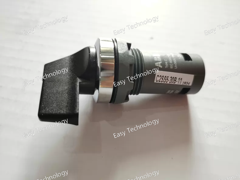 Technical Parameters General Product Type: Rotary selector switch (compact range) Model: C2SS5‑30B‑11 Actuator: Short handle, rotary Illumination: Non‑illuminated Color: Black actuator with chrome metal bezel Mounting: Panel mounting with 22 mm cut‑out Function: Maintained two‑position selector Contact Configuration: 1 × Normally Open (NO) contact 1 × Normally Closed (NC) contact Series: ABB compact C2SS selector switch range Electrical Ratings Rated Operational Voltage: 24 – 300 V AC/DC, max 300 V Rated Current (AC‑15): Suitable for signal/control loads Rated Current (DC‑13): Suitable for low‑power DC control loads Rated Insulation Voltage (Ui): 300 V Rated Impulse Withstand Voltage (Uimp): 6 kV Mechanical & Durability Mechanical Life: Approx. 500,000 operations Connection: Screw terminal connections Terminal Protection: IP20 at terminals Front Protection: High protection (e.g., IP66 / IP67 / IP69K) Pollution Degree: Industrial environments Ambient Operating Temperature: Approx. –25 °C to +70 °C Performance Switching Function: Maintained two‑position (e.g., A–C selector) Mechanical Endurance: High for frequent operator use Panel Sealing: Designed to maintain panel ingress protection when installed Applications Mode or function selection in control panels Manual input for automation control logic Forward/reverse or On/Off selection Operator station input in machinery and systems Signal selection and process control interfaces