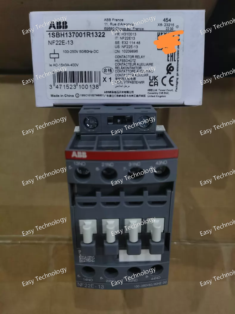 Technical Parameters General Product Type: Contactor relay / auxiliary contactor Model: NF22E‑13 Poles: 4 poles (4P) Contact Configuration: 2 × Normally Open (NO) + 2 × Normally Closed (NC) auxiliary contacts Mounting / Terminal Type: Screw terminal connections Design: Block type relay suitable for industrial panels Control / Coil Rated Control Supply Voltage: 100 … 250 V AC/DC Rated Frequency: 50 / 60 Hz (for AC coils) Coil Operation: AC/DC compatible within the specified range Electrical Ratings Rated Operational Voltage (Main/Auxiliary Circuits): Up to 690 V Rated Insulation Voltage (Ui): Up to 690 V (IEC) / 600 V (UL/CSA) Conventional Free‑air Thermal Current (Ith): 16 A Rated Operational Current AC‑15: 6 A @ 24 / 127 V AC 4 A @ 220 / 240 V AC 3 A @ 400 / 440 V AC 2 A @ 500 / 690 V AC Rated Operational Current DC‑13: 6 A @ 24 V DC 2.8 A @ 48 V DC 1 A @ 72 V DC 0.55 A @ 110 / 125 V DC 0.27 A @ 220 / 250 V DC 0.15 A @ 400 V DC 0.13 A @ 500 V DC 0.1 A @ 600 V DC Short‑time Withstand Current (Icw): ~140 A for 0.1 s ~100 A for 1 s Performance Maximum Electrical Switching Frequency: AC‑15: ~1200 cycles/hour DC‑13: ~900 cycles/hour Maximum Mechanical Switching Frequency: ~6000 cycles/hour Physical & Dimensions Width: ~45 mm Depth / Length: ~77 mm Height: ~86 mm Net Weight: ~0.27 kg Environmental & Protection Operating Ambient Temperature: −40 °C to +70 °C Storage Temperature: −60 °C to +80 °C Rated Impulse Withstand Voltage (Uimp): 6 kV Terminal Protection Rating: IP20 (terminals) Pollution Degree: Suitable for industrial environments Maximum Operating Altitude (without derating): ~3000 m Standards & Compliance Conforms to IEC/EN 60947‑5‑1 Complies with UL 508 and CSA C22.2 No.14 Applications Switching auxiliary and control circuits Interfacing between control logic (PLC, switches) and loads Automation control panels and machinery Interlocking and feedback signaling OEM and industrial control system integration