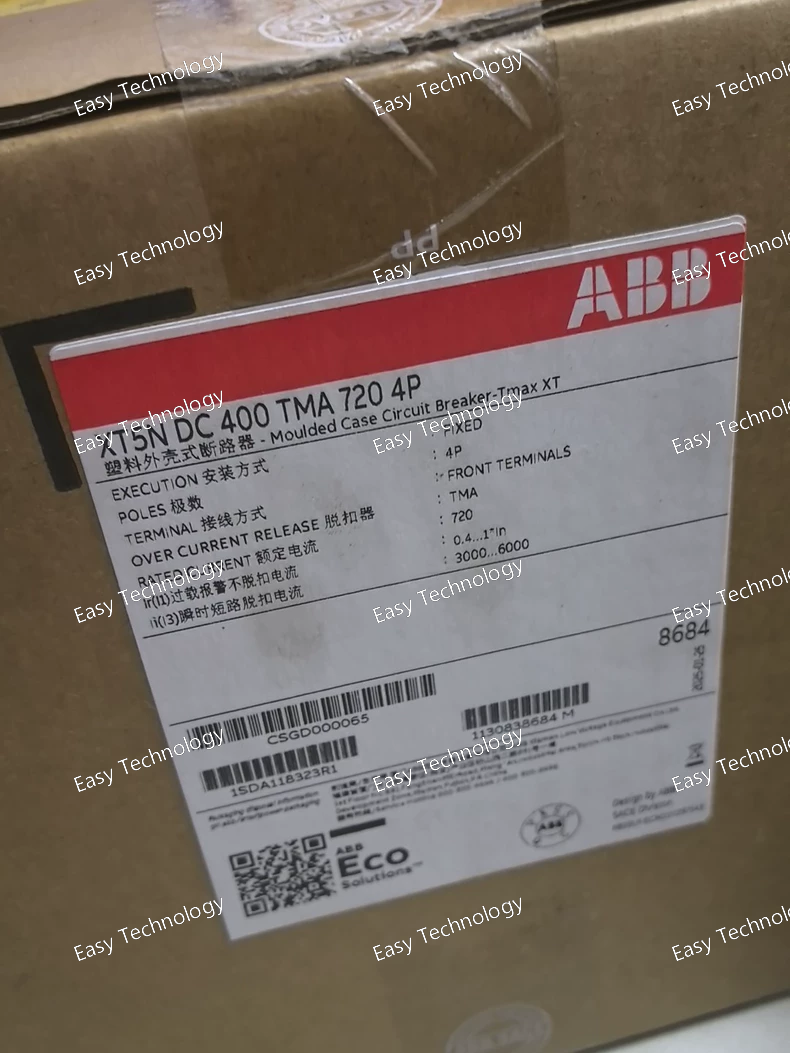 Technical Parameters Specification Details Product Type Low‑Voltage Molded Case Circuit Breaker (MCCB) Series / Model ABB Tmax XT5N 400 TMA 720 4P Rated Current (In) 400 A Number of Poles 4 (3 phases + neutral) Trip Unit Type TMA (Thermal‑Magnetic Adjustable) Trip Setting Range Adjustable for overload/current protection (typical range includes 280–400 A) Rated Insulation Voltage (Ui) 1000 V Rated Impulse Withstand Voltage (Uimp) 8 kV Rated Operational Voltage (Ue) Up to 690 V AC / suitable DC range depending on installation practice Interrupting Capacity (Icu / Ics) High interrupting capacity for AC and DC systems, suitable for heavy distribution systems Connection Type Front (FF) terminals Standards Compliance Designed to meet IEC / EN low‑voltage circuit breaker standards Mechanical Durability High cycle life typical for industrial breakers Electrical Durability Designed for many electrical switching operations Mounting Style Fixed‑mounted breaker for panel installation