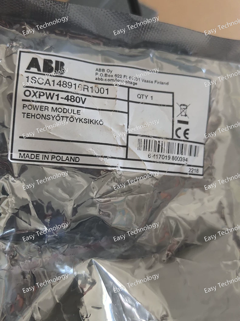 Technical Parameters Parameter Specification Manufacturer Part Number OXPW1-480V Product Line ABB XSeries (PLC / Smart Relay System) Module Type Power Supply Module (PSU) Input Voltage 480V AC, single-phase (+10%, -15%). Frequency: 50/60 Hz. Input Current Approximately 0.2A at 480V AC (typical). Output Voltage 24V DC (regulated), supplied to the connected XSeries CPU and expansion I/O modules via the backplane connector. Output Current / Power Typically supplies up to ~1.0A at 24V DC (≈ 24W) to the system. Note: This is shared between CPU and all connected I/O modules. Inrush Current Limiting Yes, to prevent nuisance tripping of the upstream fuse/circuit breaker. Internal Protection Input Fuse: Integrated, user-replaceable fuse (e.g., 2A, 250V, time-delay type). Output: Overload and short-circuit protection. Isolation Reinforced isolation between input (AC mains) and output (24V DC system) as per safety standards. Status Indicator (LED) Green PWR LED: Illuminates when input voltage is present and output is within normal range. Connection Input: Screw terminal block for Line (L) and Neutral (N) AC connection. Output: Via plug-in connector to the CPU backplane. Mounting Standard 35mm DIN Rail (EN 60715). Mounts to the left of the CPU module. Operating Temperature 0°C to +55°C (without derating). Storage Temperature -25°C to +70°C. Humidity 5% to 95% non-condensing. Altitude Up to 2000m without derating. Safety Standards Complies with UL 508 (Industrial Control Equipment), IEC/EN 61131-2 (Programmable Controllers). CE marked. EMC Standards Complies with IEC/EN 61000-6-2 (Immunity) and IEC/EN 61000-6-4 (Emission) for industrial environments. Dimensions (W x H x D) Approx. 45mm x 110mm x 75mm (Specific to the XSeries power module form factor). Weight Approx. 0.3 kg.