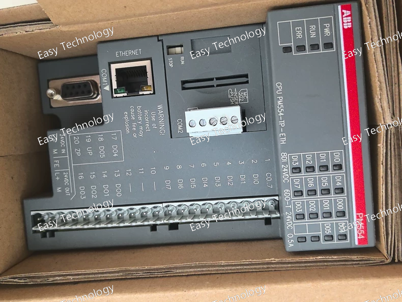 Technical Parameters Specification Details Product Type Programmable Logic Controller (PLC) CPU Module Model / Part Number PM554‑TP‑ETH (1SAP120600R0071) PLC Series ABB AC500‑eCo Program Memory ~128 kB Flash Digital Inputs (DI) 8 channels (24 V DC) Digital Outputs (DO) 6 channels (transistor type) Power Supply 24 V DC nominal Current Consumption (typ.) ~70 mA from 24 V DC Current Consumption (max.) ~190 mA from 24 V DC Power Dissipation ~3.3 W Communication Interfaces Integrated Ethernet (RJ45), RS‑485 (serial) Expansion Slots 2 option I/O slots (support additional I/O modules) Programming ABB Automation Builder (IEC 61131‑3 languages) Mounting DIN‑rail or panel mount with removable terminal blocks Typical Operating Temp. Industrial standard range Protection Rating IP20 (typical for PLC modules) Weight ~0.3 kg Typical Applications Machine control, panel automation, logic control, remote communication Network Support Ethernet communication for programming, data exchange, and integration with SCADA/IIoT
