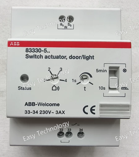Specifications Specification Value / Description Model ABB 83330‑500 Product Type Switch actuator (door/light control) System Platform ABB‑Welcome / Busch‑Welcome door communication Bus Voltage (2‑wire bus) ~28 V DC ± 2 V Operating Temperature −5 °C to +45 °C Protection Rating IP20 Output (Door Opener) Max 3 A Output (Light Switch) Loads such as: Neon: 350 W, 230 V halogen: 300 W, Low‑voltage halogen w/ conventional transformer: 350 VA, Low‑voltage halogen w/ electronic transformer: 300 VA Wire Clamps (Single‑wire) 2 × 0.6 mm² – 2 × 1 mm² Wire Clamps (Fine‑wire) 2 × 0.6 mm² – 2 × 0.75 mm² Module Width (MW) ~4 MW (modular width unit in DIN system) Typical Use Control of door openers and entrance lighting in an ABB‑Welcome door entry system