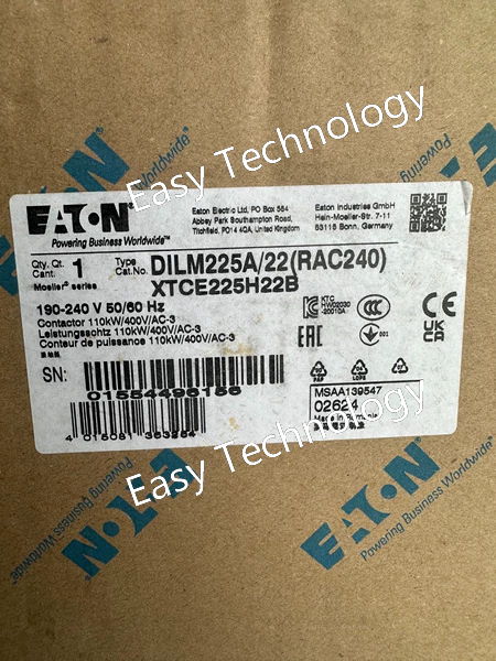 Parameter Description Specification Product Series DILM Series Contactor Relay Rated Operational Current AC-1 (Resistive Load) 22 A at 690V Motor Rating AC-3 (Squirrel Cage Motor) 7.5 kW at 400V/50 Hz Resistive Load Rating AC-1 15 kW at 400V Number of Poles Main Circuits 4 NO (Normally Open) Rated Insulation Voltage 1000 V Rated Operational Voltage Up to 690 V AC Coil Control Voltage AC Operation 230V AC, 50/60 Hz* Electrical Endurance AC-3 > 1 million operations Mechanical Durability > 10 million operations Mounting Method 35 mm DIN rail Connection Type Spring-loaded cage clamp Terminal Capacity Main Circuits Up to 10 mm² Ambient Temperature Operation -25°C to +60°C Weight Approximate 0.55 kg Standards & Approvals IEC/EN 60947-4-1, UL 508, CE, CCC