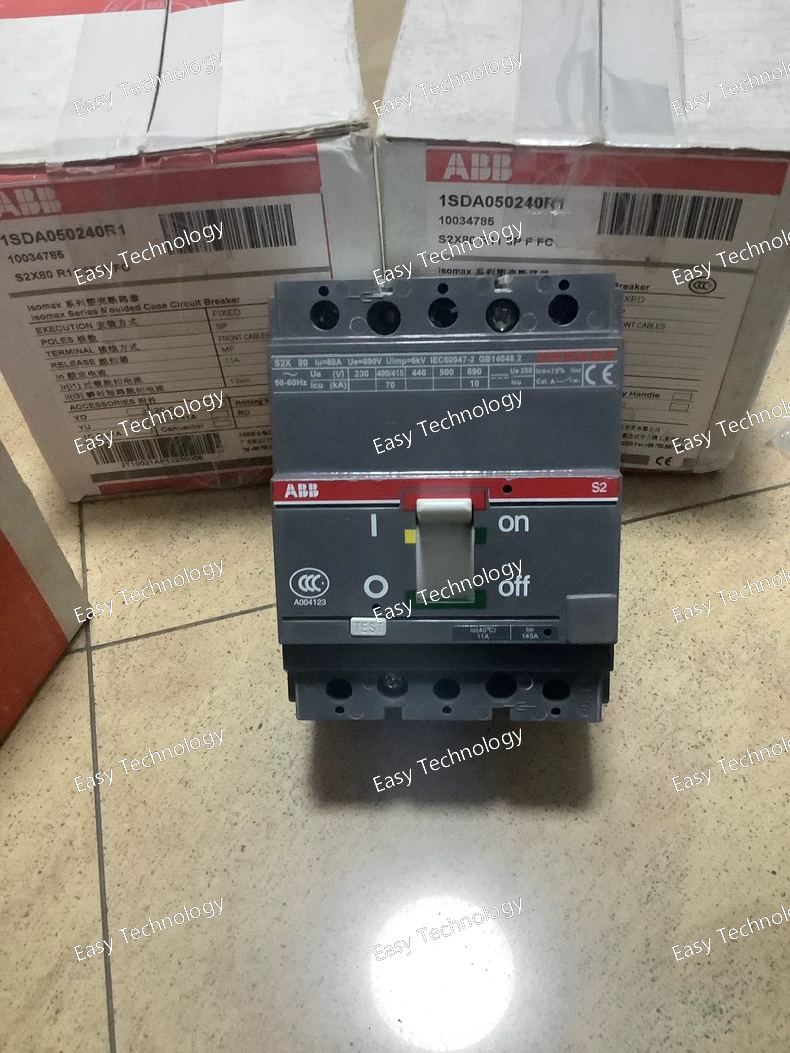 Specifications Product Type: Molded Case Circuit Breaker (MCCB) Series: SACE S2X Frame Size: S2X Rated Current (In): 80 A Trip Unit Type: R11 (Thermal-Magnetic) Thermal Protection: Fixed overload protection Magnetic Protection: Fixed instantaneous short-circuit protection Trip Unit Setting: FFC (Fixed Thermal / Fixed Magnetic) Number of Poles: 3P Rated Operational Voltage (Ue): Up to 690 V AC Rated Insulation Voltage (Ui): 800 V Rated Impulse Withstand Voltage (Uimp): 8 kV Rated Frequency: 50 / 60 Hz Breaking Capacity Class: X (high breaking capacity) Mounting Type: Fixed installation Operating Mechanism: Manual Standards: IEC / EN 60947-2 Typical Applications: Power distribution feeders Industrial and commercial electrical systems Protection of cables and downstream equipment