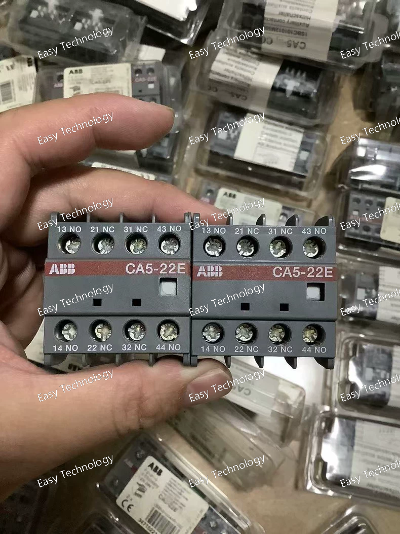 Technical Specifications Parameter Specification Part / Model ABB CA5‑22E Product Type Auxiliary Contact Block Contact Configuration 2 Normally Open (NO) + 2 Normally Closed (NC) Rated Insulation Voltage (Ui) Up to 690 V AC Rated Operational Voltage 50 / 60 Hz, auxiliary circuit up to 690 V Rated Operational Current (AC‑15) ~6 A @ 24 / 127 V AC; ~4 A @ 220 / 240 V AC; ~3 A @ 380 / 440 V AC; ~2 A @ 500 / 690 V AC Rated Operational Current (DC‑13) ~6 A @ 24 V DC; ~2.8 A @ 48 V DC; ~0.55 A @ 110–125 V DC; ~0.3 A @ 220–250 V DC Terminal Type Screw terminals Mounting Type Front‑mounted on ABB contactors Operating Cycles 1200 electrical cycles/hour, 3600 mechanical cycles/hour Short‑Time Withstand Current 140 A for 0.1 s Maximum Mechanical Durability ~10 million cycles Maximum Electrical Durability ~3 million cycles Degree of Protection IP20 (auxiliary terminals) Dimensions (approx.) 44 × 47 × 39 mm (W × H × D) Weight (approx.) ~0.06 kg
