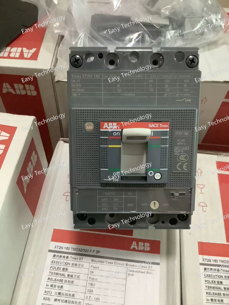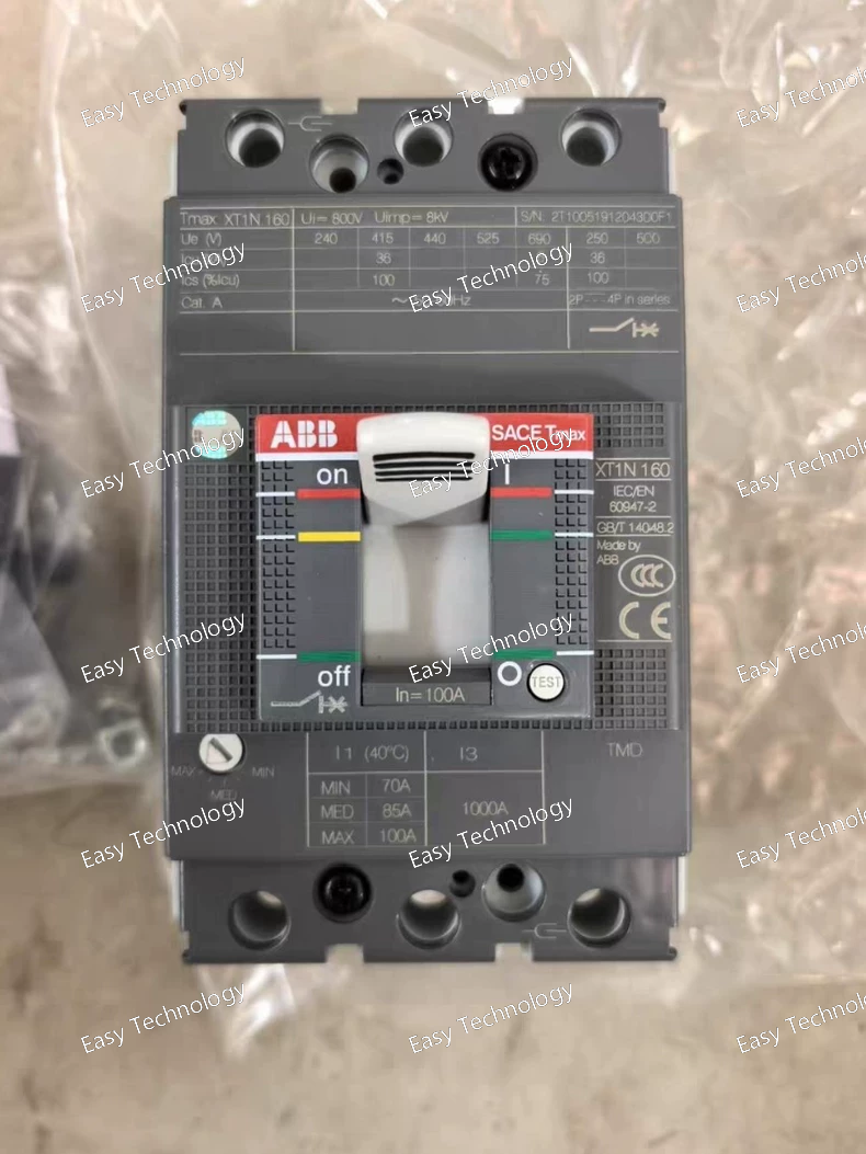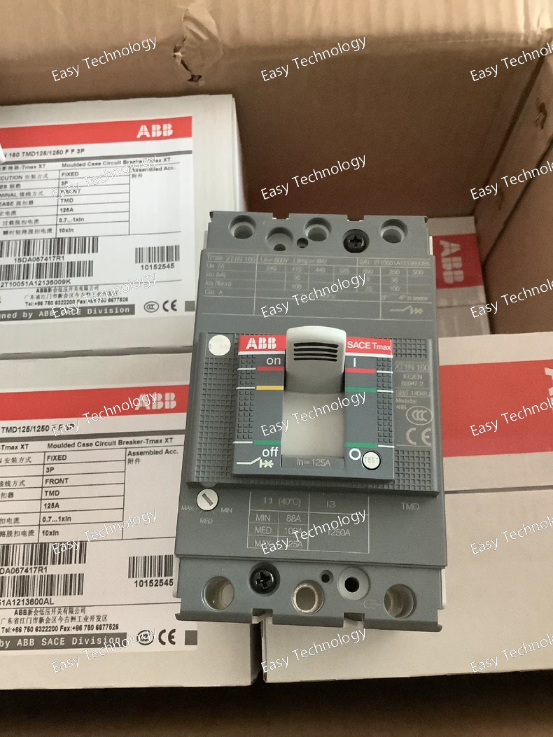 Technical Parameters Parameter Specification Product type Molded Case Circuit Breaker (MCCB) Product series ABB SACE Tmax XT1N Poles 3 poles Terminal type Front fixed terminals (FF) Trip unit type TMD (Thermal-magnetic) Adjustable instantaneous (short-circuit) setting 125–1250 A Rated uninterrupted current (Iu) 160 A frame rating Rated operational voltage (Ue) Up to 690 V AC / 500 V DC Rated insulation voltage (Ui) 800 V AC Rated impulse withstand voltage (Uimp) 8 kV Rated service short-circuit breaking capacity (Ics) 50 kA @ 220–230 V AC; 36 kA @ 380–415 V AC; 25 kA @ 500 V AC; 8 kA @ 690 V AC (typical IEC values) Rated ultimate breaking capacity (Icu) Same as Ics depending on voltage Protection functions Overload and short‑circuit protection Standards compliance IEC 60947‑2 Mechanical durability ~25,000 operations Electrical durability ~8,000 operations at rated load Mounting Fixed panel installation Typical applications Industrial and commercial power distribution, feeder protection, motor control centers