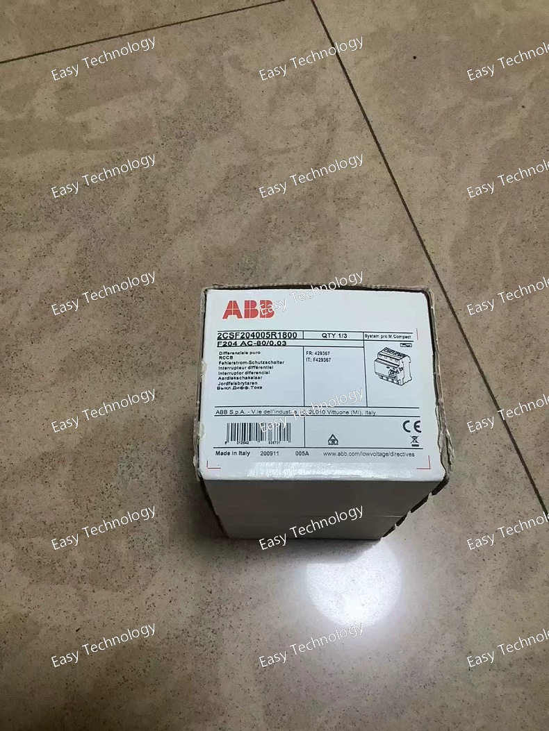 Technical Parameters Parameter Specification Product type Residual Current Circuit Breaker (RCCB) Product series ABB F200 / F204 AC ABB Ordering Code 2CSF204005R1800 Poles 4 poles (4P) Rated current (In) 80 A Rated operational voltage (Ue) 230 / 400 V AC Rated insulation voltage (Ui) 500 V Rated impulse withstand voltage (Uimp) 4 kV Rated residual current (IΔn) 30 mA Type of residual current Type AC (sensitive to AC sinusoidal leakage) Rated conditional short‑circuit current (Inc) 10 kA Rated service short‑circuit breaking capacity (Ics) 1 kA Standards compliance IEC 61008‑1 / IEC 61008‑2‑1 Leakage current sensing AC type leakage detection Mounting DIN rail Typical applications Earth leakage protection in distribution panels for residential, commercial, and light industrial installations