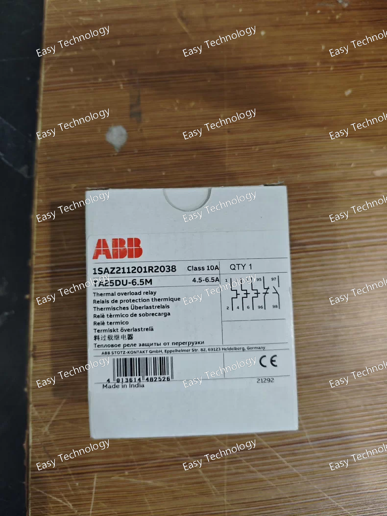 Technical Parameters Parameter Specification Product type Thermal overload relay Product series ABB TA series ABB Ordering Code 1SAZ211201R2038 Compatible contactors ABB A / AF series contactors Current setting range 6.5 A Tripping class Class 10A Number of poles 3 Rated operational voltage (Ue) Up to 690 V AC Rated insulation voltage (Ui) 690 V AC Auxiliary contacts 1 NO + 1 NC (trip indication) Reset type Manual Phase failure sensitivity Yes Ambient temperature compensation Yes Mounting Direct mounting to contactor or panel mounting Protection degree IP20 Ambient operating temperature −25 °C to +55 °C Applicable standards IEC compliant Typical applications Small motor starters, control panels, industrial motor protection