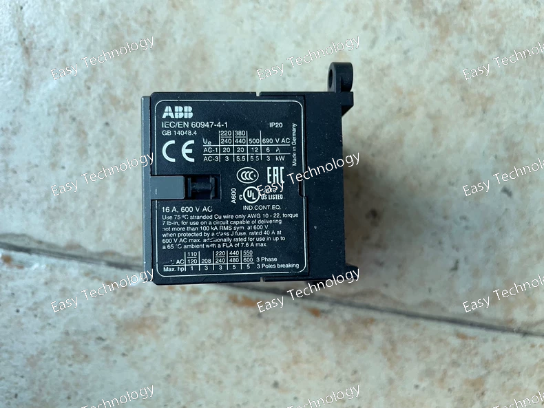 Technical Specifications Parameter Value / Description Contactor Type 3‑pole miniature contactor (mini contactor) Main Contacts 3 × NO (normally-open) Auxiliary Contacts 1 × NO (built-in auxiliary contact) Poles 3‑pole (3 main contacts) Main Circuit Rated Voltage (Ue) Up to 690 V AC (or 220–690 V AC typical) Control / Coil Voltage (Uc) DC coil (various coil‑voltage versions depending on variant) — common variants: 12 V DC, 24 V DC, etc. Insulation Voltage (Ui) 690 V AC; (UL/CSA rating often 600 V) Impulse Withstand Voltage (Uimp) 6 kV (main circuit and auxiliary circuit) Rated Operational Current (AC‑1, Ie) 20 A @ 220–240 V AC (40 °C) / 16 A @ 55 °C; 20 A @ 380–440 V AC (40 °C) / 16 A @ 55 °C; 6 A @ 690 V AC (40 °C / 55 °C) Rated Operational Power (AC‑3, motor load) ~2.2 kW @ 230 V AC (three‑phase) ~4.0 kW @ 400 V AC (three‑phase) ~3.0 kW @ 690 V AC (three‑phase) Short-Time Withstand Current (Icw) 64 A for 10 s (cold start, free air, 40 °C) Coil & Control Features Hum‑free DC coil; low coil power consumption; suitable for direct control via PLC outputs or low‑power control circuits Mounting / Installation Wall or DIN‑rail mounting (mini‑contactor style) Terminal / Connection Type Screw‑terminal main contacts; compact screw terminals for auxiliary contact/coil Auxiliary Contact Rating (AC‑15 / control circuit) Up to 4 A @ 120 V or 220–240 V AC; lower currents at higher voltages Mechanical / Environmental Operating ambient temperature: –25 … +55 °C; Storage: –40 … +80 °C (depending on variant) Max recommended installation altitude: 2000–3000 m depending on standard