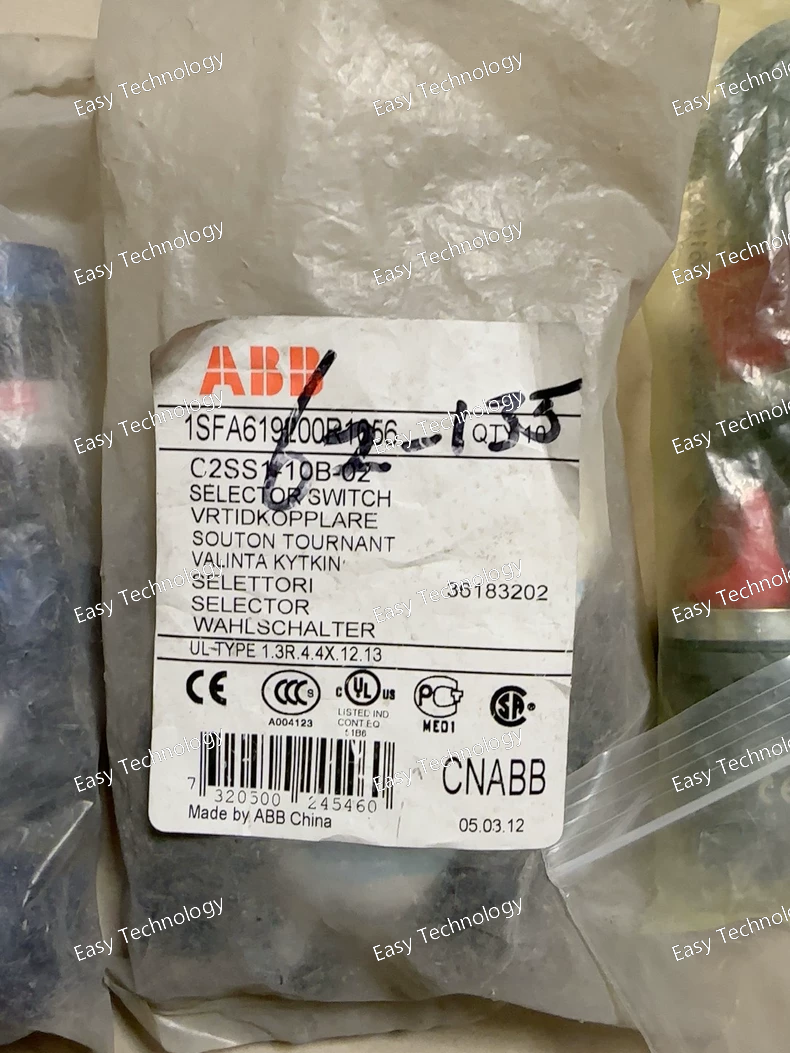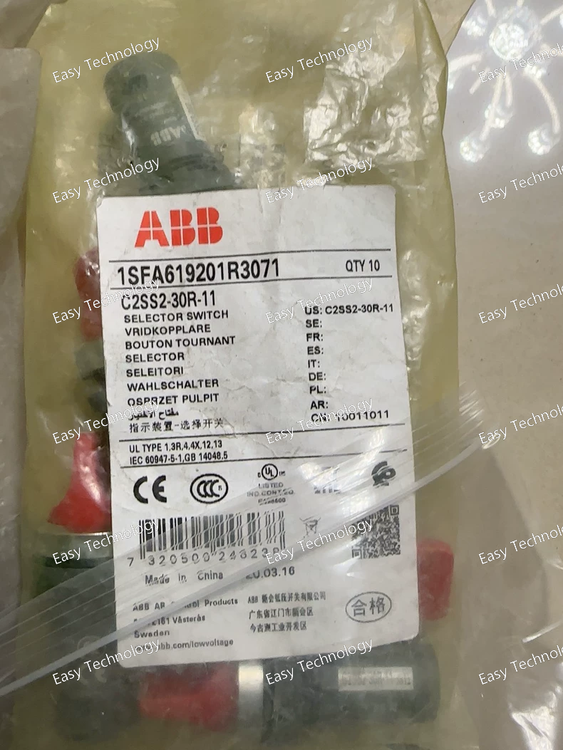 Specifications General Type: Control / Selector Switch Series: ABB C2 Model: C2SS1-10B-02 Actuator Type: Rotary selector Mounting: Panel mount, front panel cutout Electrical Characteristics Rated Operational Voltage (Ue): 600 V AC Rated Operational Current (Ie): 10 A Contact Configuration: SPDT / 1NO + 1NC (depends on variant) Insulation Voltage: 660 V Mechanical Life: 50,000 operations (typical) Electrical Life: 10,000 operations at rated load Mechanical & Construction Housing Material: Thermoplastic or metal with industrial-grade finish Actuator Material: Thermoplastic / Bakelite Dimensions: Standard panel cutout compatible with C2 series Protection Class: IP40 (front panel), IP20 (rear) Environmental Conditions Operating Temperature: –25 °C to +55 °C Storage Temperature: –40 °C to +70 °C Humidity: 0–95% RH, non-condensing Standards & Certifications Standards Compliance: IEC 60947-3, UL 508 Safety Approvals: CE, UL, CSA depending on variant Features Durable and reliable mechanical construction Easy front-panel mounting with standard cutout Clear position indication and ergonomic actuator Suitable for industrial motor control, distribution panels, and automation systems