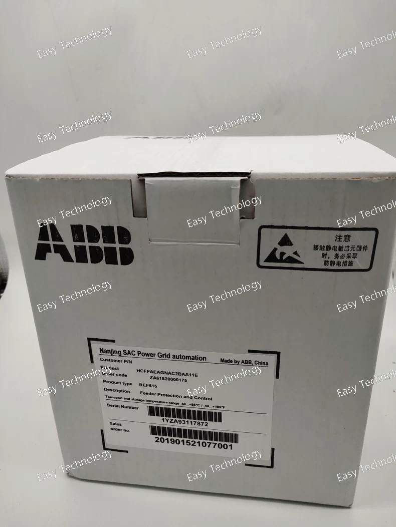 Technical Specifications / Parameters Parameter Specification Manufacturer Model REF615J Product Family / Series ABB Relion® 615 Series (Feeder Protection) Device Type Numerical Feeder Protection and Control Relay Housing "J" Case (Standard depth design, offering a balanced profile for panel integration). Key Protection Functions • Overcurrent Protection (50/51, 50N/51N) with multiple independent, time-delayed or instantaneous stages • Directional Overcurrent Protection (67/67N) • Sensitive Directional Earth-Fault Protection • Thermal Overload Protection (49) for cables and motors • Phase Imbalance / Negative Sequence (46) • Breaker Failure Protection (50BF) • Under/Overvoltage (27/59) & Under/Overfrequency (81O/U) • Auto-reclosing (79) (for overhead lines) • Inrush Current Restraint (to prevent transformer magnetizing inrush misoperation) Control & Monitoring • Advanced Programmable Logic using CAP (Configuration and Planning) editor in PCM600 • Sequence of Events (SOE) Recorder with high-resolution time-stamping • Disturbance Recorder (Fault Recorder) for detailed fault analysis • Comprehensive Metering: V, I, P, Q, PF, Energy, Harmonics, etc. • Circuit Breaker Condition Monitoring (operating time, trip count, wear estimation) Communication Protocols • IEC 61850 (Edition 2) for station bus communication (MMS, GOOSE for high-speed peer-to-peer signaling) • IEC 60870-5-103 & IEC 60870-5-104 • Modbus RTU (serial) & Modbus TCP/IP (over Ethernet) • DNP3 (Serial & TCP) • IEC 61850 over MMS for SCADA integration Hardware I/O (Typical Configuration) • Binary Inputs: 9-12 (24-250V DC, configurable) • Binary Outputs (Relays): 8-10 (Form-A or Form-C contacts) • Analog Inputs: 4 current (1A/5A), 4 voltage (100-120V line-to-neutral) • Ethernet Ports: 2 or 4 (RJ45, copper or optional fiber) • Serial Ports: 1-2 (RS485/RS232) Human-Machine Interface (HMI) • High-contrast graphical LCD display • Intuitive menu navigation with front-panel keys • LED Indicators for status, alarms, and trip • Multilingual text support Power Supply Wide-range options: 24-48V DC, 60-250V DC, or 110-240V AC/DC. Standards & Certifications IEC 60255, IEC 61850, IEEE C37.90, UL 508, CE, DNV, and other industry-specific certifications. Mounting Panel mounting (flush or surface) or DIN Rail Mounting (with optional kit). Configuration Software ABB PCM600 (Protection and Control IED Manager) for parameter setting, logic configuration, and commissioning.