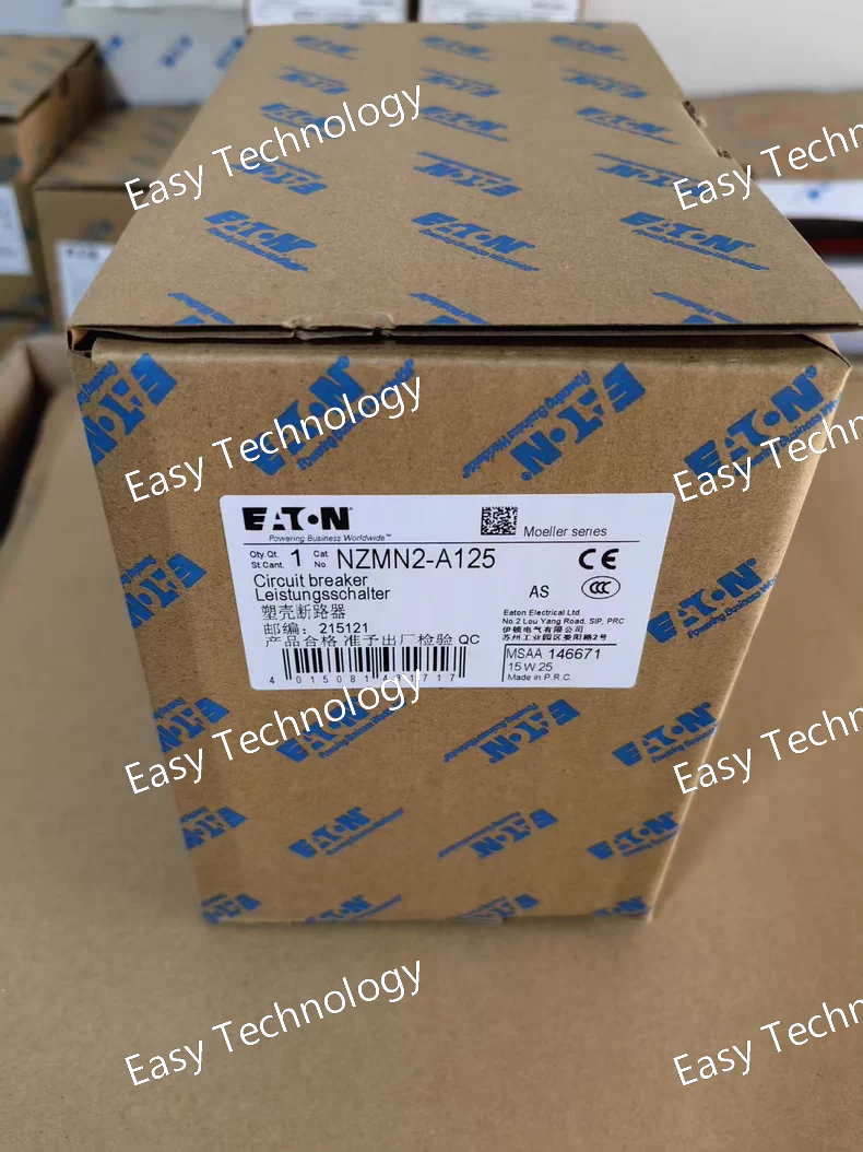 Technical Parameters Parameter Category Description / Value Brand & Series Eaton, NZM Series Model Number NZMN2-A125 Number of Poles 2-Pole Rated Current 125 A (Frame Size) Rated Operational Voltage (Ue) Up to 480V AC Rated Insulation Voltage (Ui) 690V AC Rated Ultimate Breaking Capacity (Icu) Typically 25 kA / 35 kA at 480V AC (Confirm with specific datasheet) Trip Unit Type Type A - Adjustable Electronic Trip Unit Protection Functions L - Long-time Delay (Overload) S - Short-time Delay (Short-Circuit) I - Instantaneous (Short-Circuit) Standards Compliance IEC 60947-2