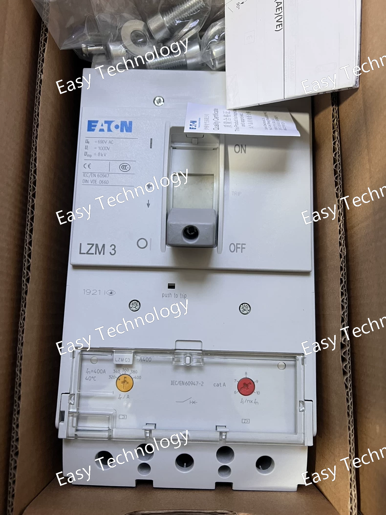 Technical Parameters Parameter Category Description / Value Brand & Series Eaton, LZMC Series Model Number LZMC3-A400 Number of Poles 3-Pole Rated Current 400 A (Frame Size) Rated Operational Voltage (Ue) Up to 690V AC Breaking Capacity High interrupting capacity (Specific kA rating depends on voltage - typically 35-65kA range) Trip Unit Type Type A - Adjustable Electronic Trip Unit Protection Functions L - Long-time Delay (Overload) S - Short-time Delay (Short-Circuit) I - Instantaneous (Short-Circuit) Standards Compliance IEC 60947-2