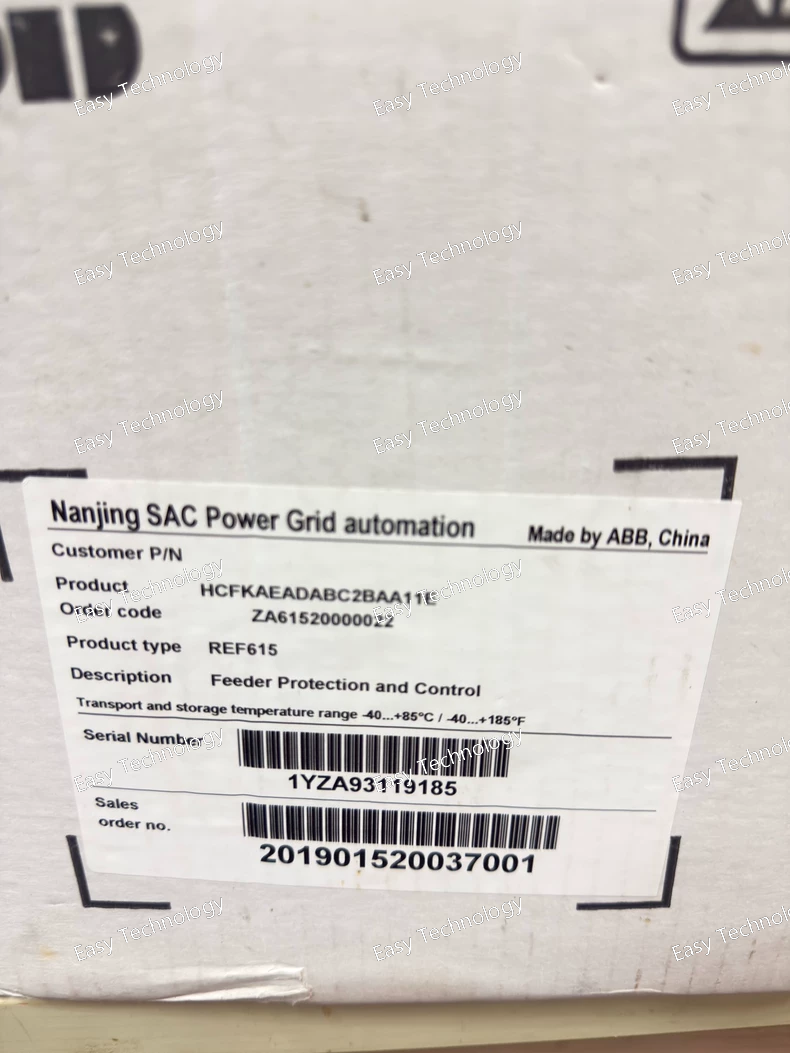 Technical Parameters Parameter Category Specification Product Series / Platform ABB Relion® 615 Series (REF615 Platform) Device Type Numerical Feeder Protection and Control Relay (IED) Hardware Variant Suffix -E - Typically indicates: • Wide-range auxiliary power supply. • Extended operating temperature range. • Possibly a specific default I/O or communication configuration. Key Standards IEC 60255, IEC 61850 (Ed. 2), IEC 60870-5-103 Rated Auxiliary Supply (Us) Typical for -E version: 48 - 250 V DC / 48 - 240 V AC, 50/60 Hz (Auto-ranging). This is a key benefit, allowing installation in systems with various control voltages. Analog Inputs • Current (CT) Inputs 5 current inputs: 3 phase (IL1, IL2, IL3), 1 neutral (IN), 1 sensitive earth fault (Io). Configurable for 1 A or 5 A secondary. • Voltage (VT) Inputs 4 voltage inputs: 3 phase (UL1, UL2, UL3) + 1 residual/auxiliary voltage (Uo). Standard ratings: 100/110 V or 100/√3 V. Core Protection Functions Full suite included (configurable via software): • Directional/Non-directional phase & earth overcurrent (50/51, 67) • Two-step negative sequence overcurrent (46) • Thermal overload (49) • Over/Under voltage (27/59) & frequency (81) • Auto-reclosing (79) • Breaker failure (50BF) • Sensitive directional earth fault (67N) Control & Automation • Control of up to 5 switching devices (CB, disconnectors). • Programmable logic (CFC in PCM600). • Synchrocheck (25). Measurement & Metering Class 0.5 for: I, V, P, Q, S, PF, f, Energy (kWh, kVARh), Harmonics. Human-Machine Interface (HMI) • Graphical LCD with backlight. • Keypad navigation. • LED indicators. • Front USB port. Data Recording • Event recorder (>1000 events). • Disturbance recorder (oscillography). Communication Interfaces Base unit typically includes: • 1 x RS485 port (for IEC 60870-5-103 or Modbus RTU). • 1 x Ethernet port (RJ45, front or rear). Optional plug-in modules for: IEC 61850, IEC 60870-5-104, additional Ethernet, Profibus, etc. Time Synchronization IRIG-B, SNTP, PTP (IEEE 1588) support. Operating Temperature Extended Range: -40°C to +70°C (A key feature of the -E variant). Mounting Panel-mounted (compact design). Configuration Software ABB PCM600. Typical Ordering Context A complete order code would be longer, e.g., REF615C-E A5D1A1B1B1B5C..., where the subsequent letters/numbers define: CT/VT ratings, binary I/O count, communication modules, etc.