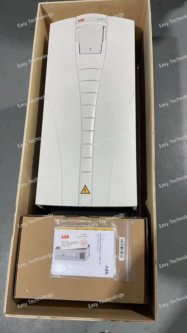 Technical Parameters Parameter Specification / Value Brand & Series ABB ACS510 Product Model ACS510-01-038A-4 Rated Output Power 18.5 kW (25 HP) Rated Output Current 38 A (Decoded from "038A") Input Supply Voltage 3-phase, 200–240 V AC (±10%) Input Supply Frequency 47–63 Hz Output Frequency Range 0.1–500 Hz Control Method Scalar control (V/Hz) with Automatic Energy Optimization (AEO) and enhanced motor control features. Enclosure Rating IP21 / UL Type 1 (chassis type, must be installed in a protective cabinet). Built-in EMC Filter Not Standard at this power level. Typically requires an external EMC filter (e.g., ABB RFI filter) for compliance with emission standards. Fieldbus Interface Integrated Modbus RTU (RS-485). Optional fieldbus adapters (PROFIBUS, PROFINET, etc.) available. Digital/Analog I/O 3 Digital Inputs (DI) 1 Digital Output (DO) – Relay 1 Analog Input (AI) (0/4–20 mA or 0–10 V) 1 Analog Output (AO) (0/4–20 mA) Key Application Features • Dual PID controllers • Sleep/Wake & Catch a Spinning Motor • Automatic Energy Optimization (AEO) • Pump/Fan application macros • Flying Start • Customizable U/f curves Overload Capacity 110% of rated current for 60 seconds (for centrifugal loads like pumps and fans). Braking Chopper Not built-in. An external brake resistor and chopper unit are required for fast deceleration or overhauling loads. Cooling Method Forced air cooling (internal fan). Protection Features Comprehensive: Motor thermal (I²t) protection, short circuit, ground fault, over/under voltage, phase loss, drive overheating, etc. Operating Temperature -15°C to +40°C (without derating). Up to +50°C with current derating. Connection Terminals Screw terminals for power (R/L1, S/L2, T/L3, U, V, W, DC+, DC-, Brake) and control. Mounting Wall mounting (vertical orientation recommended for optimal cooling). Standards & Approvals CE, cULus, RoHS, IEC 61800-5-1, EN 61800-3.