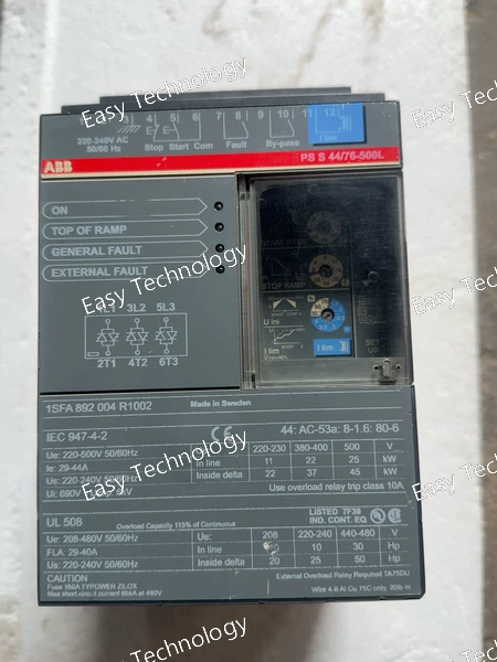 Technical Data Parameter Specification / Value Drive Series & Model ABB ACS510 General Purpose Drive Product Code ACS510-01-04A1-4 Rated Output Power 1.5 kW (2.0 HP) Rated Output Current 4.1 A (This aligns with the "04A1" code: 04 = 4.x Amps, 1 = .1) Input Supply Voltage 3-phase, 200 - 240 V AC (±10%) (*The "-01" denotes this specific low-voltage range*) Input Supply Frequency 47 - 63 Hz Output Frequency Range 0.1 - 500 Hz Control Method Scalar Control (Volts/Hertz - V/Hz) with flux optimization. Enclosure Class IP21 / UL Type 1 (Chassis Type). Requires installation in a proper enclosure for full protection. Built-in Standard EMC Filter Yes, Class A (Standard). Limits electromagnetic interference. Fieldbus Interface Integrated Modbus RTU via RS-485. Digital/Analog I/O 3 Digital Inputs (DI) 1 Digital Output (DO) - Relay 1 Analog Input (AI) (0/4-20 mA or 0-10 V) 1 Analog Output (AO) (0/4-20 mA) Key Application Features • Dual PID Controllers • Sleep/Wake Function • Flying Start • Auto Energy Optimization (AEO) • Pump/Fan-specific curves Overload Capacity 110% of rated current for 60 seconds (Light overload capacity, suitable for centrifugal loads). Braking Chopper Not built-in. Supports connection of an external brake resistor for deceleration or holding loads. Protection Features Comprehensive: Motor thermal (I²t) overload, short circuit, ground fault, overvoltage, undervoltage, phase loss, etc. Operating Temperature -15°C to +40°C (full rated output). Up to +50°C with derating. Storage Temperature -40°C to +70°C Relative Humidity < 95% RH, non-condensing Mounting Wall mounting or on DIN rail (with optional adapter kit). Approvals & Standards CE, cULus, RoHS, compliant with IEC 61800-5-1, EN 61800-3.