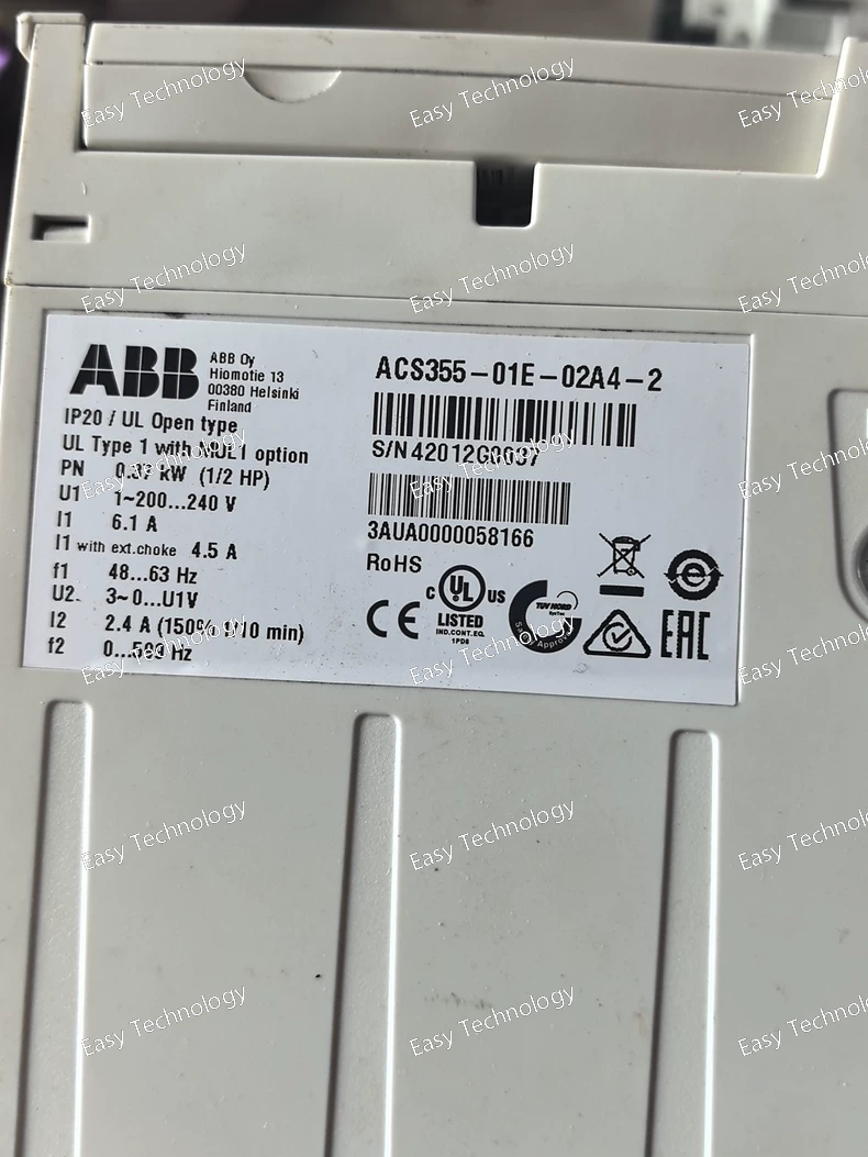 Technical Specifications Input Power: 200-240V AC, 1-phase, 50/60 Hz Output Power: 0.75 kW (1 HP) at 240V Output Current: 4.0 A continuous Output Voltage: 3-phase, 0-240V Enclosure: IP21 (indoor use, protected against dripping water) Dimensions: ~185 × 90 × 153 mm Weight: Approximately 2.0 kg Cooling: Convection cooling (fanless) Key Features Simple Control: Basic speed/torque control Built-in I/O: 2 digital inputs (24V DC) 1 analog input (0-10V/0-20mA) 1 relay output (250V AC, 2A) Communication: Optional fieldbus adapters Protection: Overload, short circuit, overtemperature Application Macros: Pre-programmed for common applications Keypad: Basic control panel included Application Areas Small pumps and fans Conveyor systems Packaging machinery Material handling equipment Basic industrial automation OEM machine integration