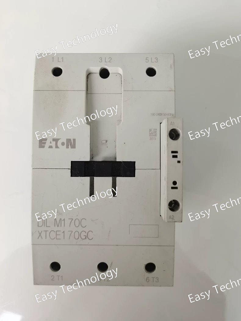 Technical Parameters Parameter Category Description / Value Brand & Series Eaton, DILM Series Model Number DILM170C XTCE170GC Rated Operational Current (Ie) 170 A at AC-3, 400V Thermal Current (Ith) 170 A Poles (Main Circuit) 3 (Normally Open) Auxiliary Contacts Typically 1 NO (Normally Open) - Fixed (configurable with additional blocks) Rated Operational Voltage (Ue) Up to 690V AC Control Coil Voltage DC operating coil (Specific voltage defined by the XTCE170GC suffix). Utilization Categories AC-3: Squirrel cage motors: Starting, switching off during running AC-1: Non-inductive or slightly inductive loads Motor Rating (at 400V AC) 75 kW / 100 HP Mechanical Life ~ 5-10 million operations Electrical Life (AC-3) ~ 0.5-1 million operations Mounting Screw mounting (due to size and weight) Standards Compliance IEC/EN 60947-4-1, UL 508, CSA C22.2 No. 14 Terminal Type Screw Clamp
