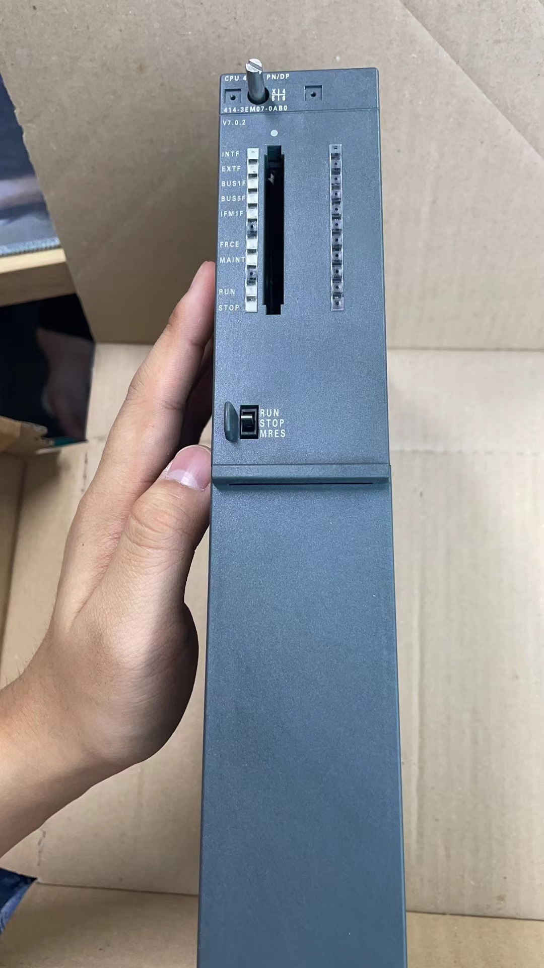 6ES7414-3EM07-0AB0 Brief English Description Product Overview Type: SIMATIC S7-400 CPU 414-3 PN/DP Order Code: 6ES7414-3EM07-0AB0 Category: Mid-range industrial controller for medium to large automation systems. Key Features Performance: 20 MB RAM for program and data storage. Bit operation speed: ~0.04 μs for high-speed processing. Communication: 2x PROFINET IO controllers (10/100 Mbps, RJ45). 1x MPI/DP interface (12 Mbps, master/slave). Integrated Web server for remote access. Operation: 24 V DC power supply (±20% tolerance). Operating temperature: 0°C to 60°C (with ventilation). Compatibility: Supports STEP 7 programming (LAD/FBD/STL/SCL/GRAPH). Works with SIMATIC S7-400 I/O modules and distributed I/O via PROFINET/DP.
